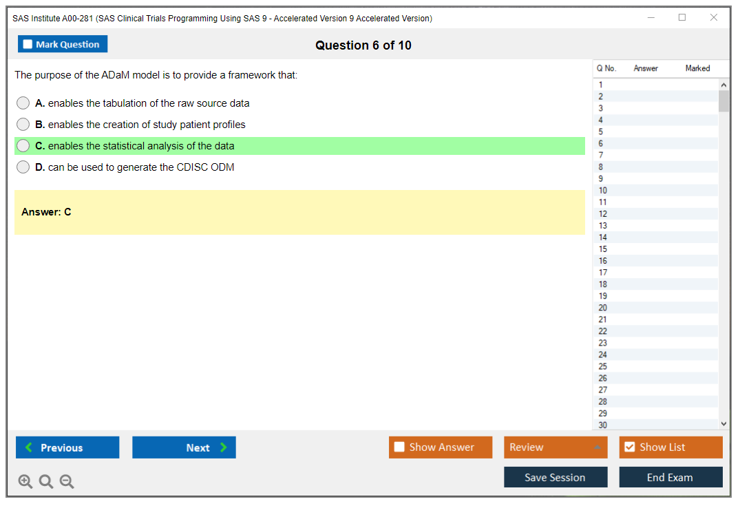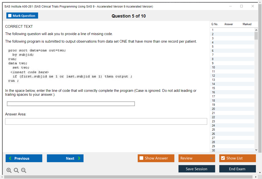 The SAS Institute A00-281 (SAS Clinical Trials Programming Using SAS 9 - Accelerated Version 9 Accelerated Version) Exam is designed to validate the skills and knowledge required to manage and analyze clinical trial data using SAS software. It focuses on the use of SAS programming to support clinical trials, including data manipulation, reporting, and statistical analysis.