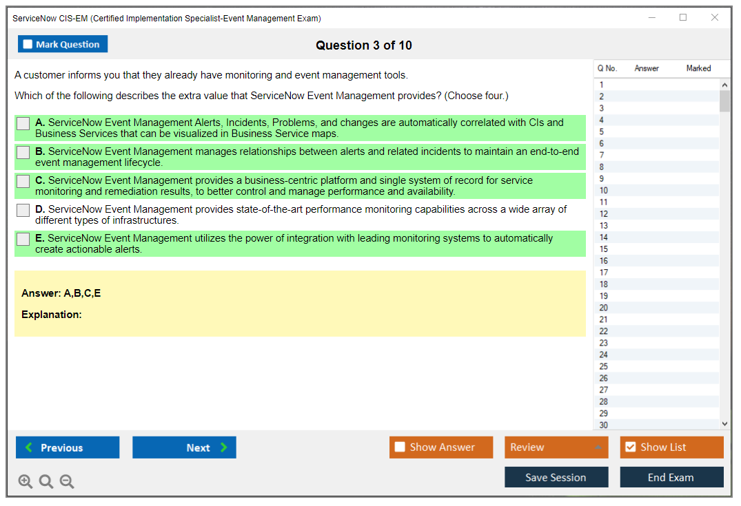 The ServiceNow CIS-EM (Certified Implementation Specialist-Event Management) Exam is designed to certify that a candidate has the necessary skills and knowledge to implement, configure, and maintain the ServiceNow Event Management application.