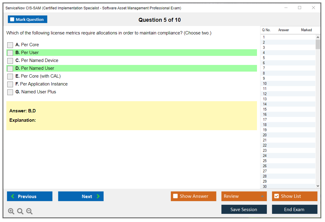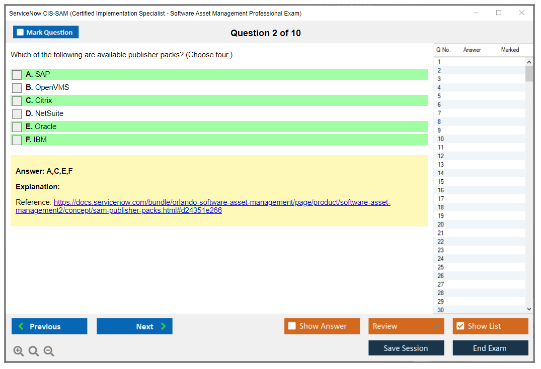 What are the Sample Questions of ServiceNow CIS-SAM Exam?