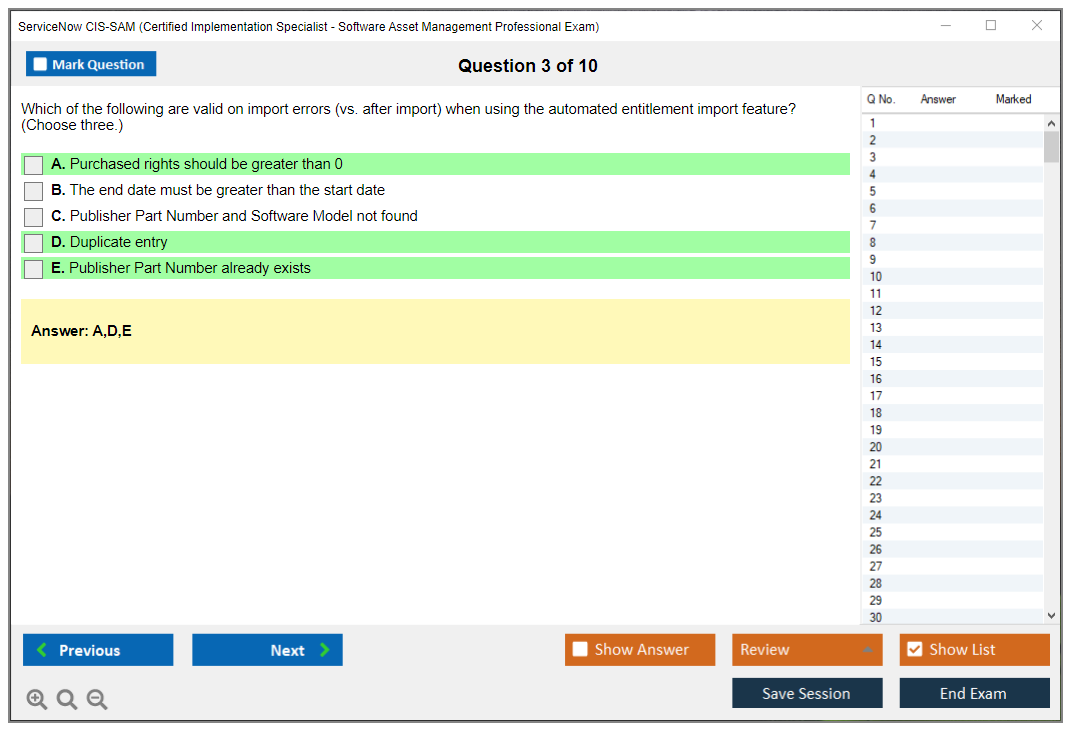 The ServiceNow CIS-SAM Exam aims to validate the skills and knowledge of candidates in implementing, configuring, and maintaining the ServiceNow Software Asset Management (SAM) application. It ensures that certified professionals can effectively manage software assets using ServiceNow's platform.