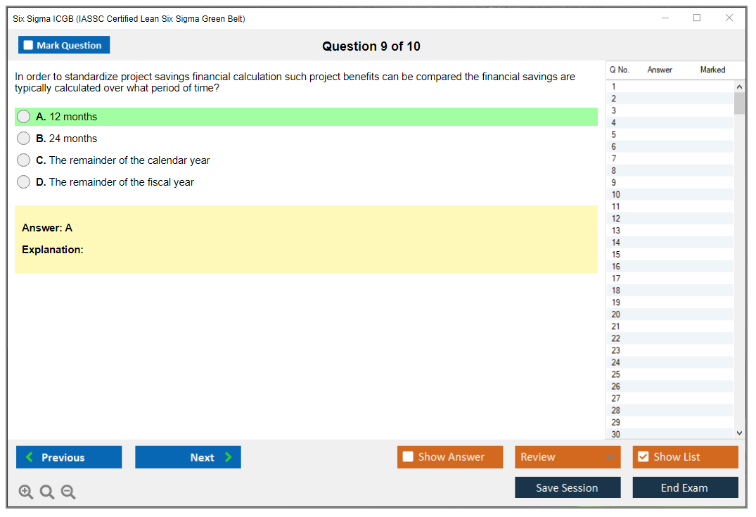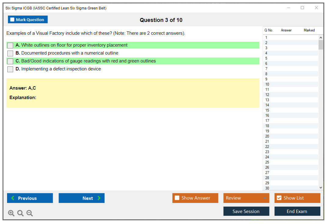 The Six Sigma ICGB (IASSC Certified Lean Six Sigma Green Belt) Exam is a professional certification exam designed to measure a candidate's knowledge and understanding of the Lean Six Sigma methodology and its application. It focuses on the DMAIC (Define, Measure, Analyze, Improve, Control) process improvement cycle.