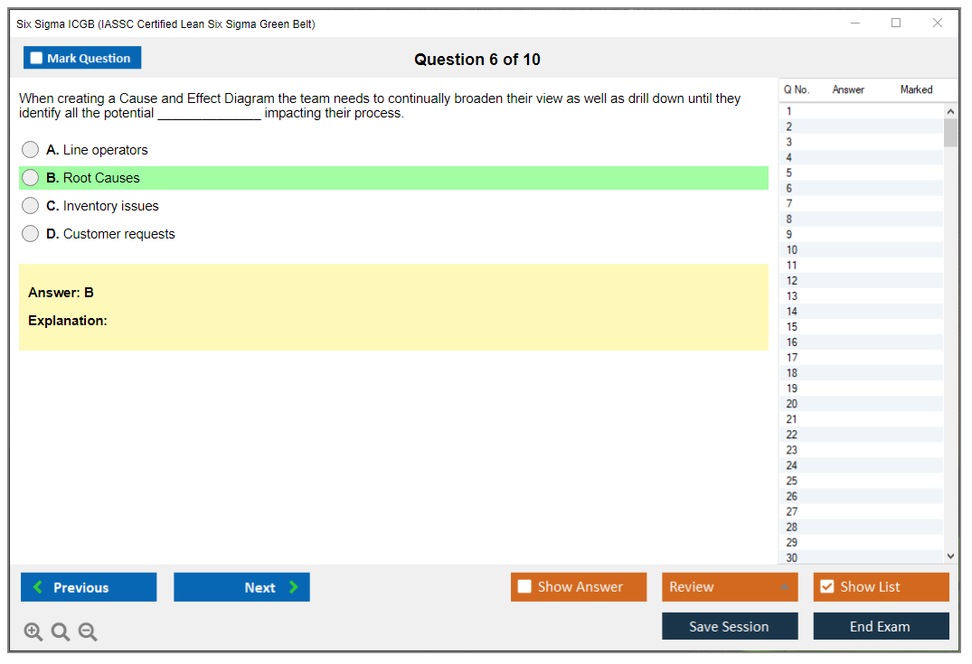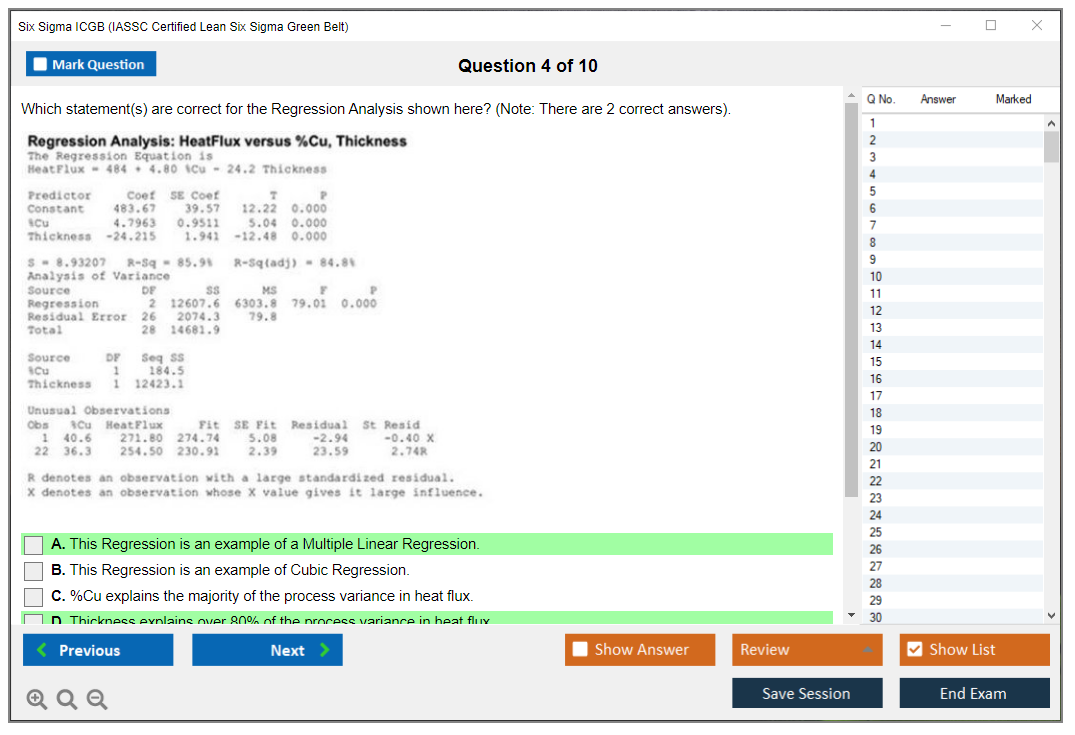 What are the Sample Questions of Six Sigma ICGB Exam?