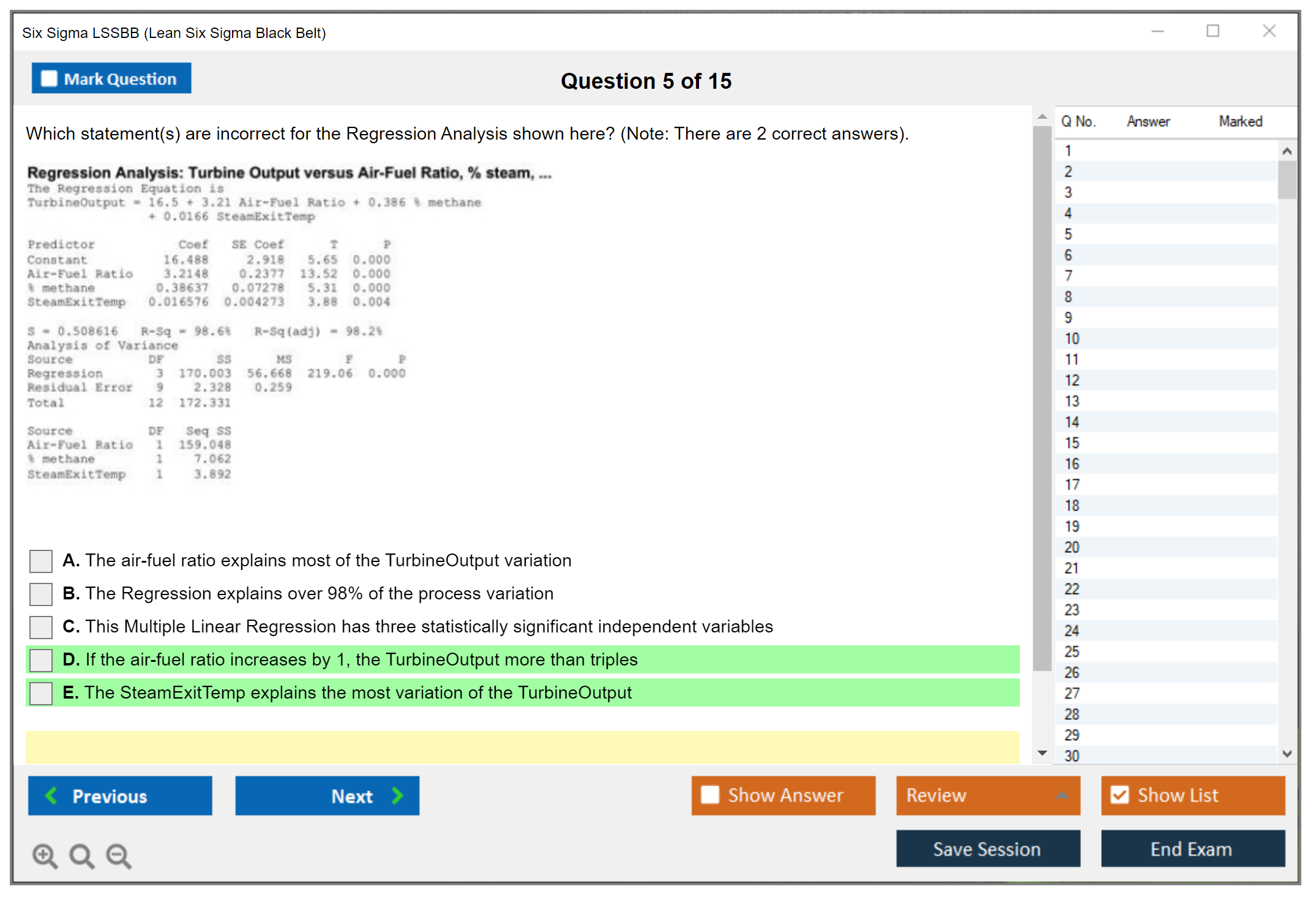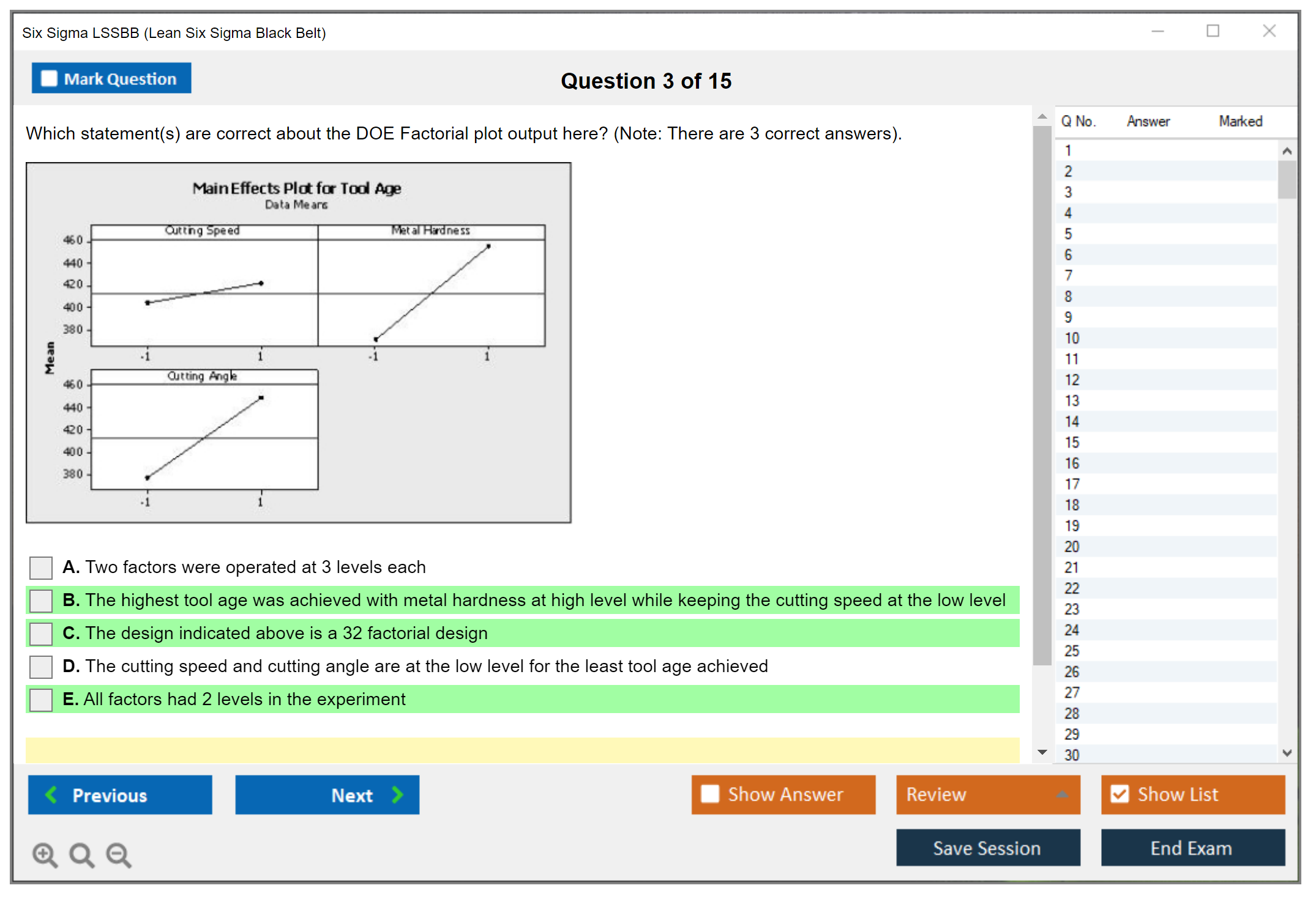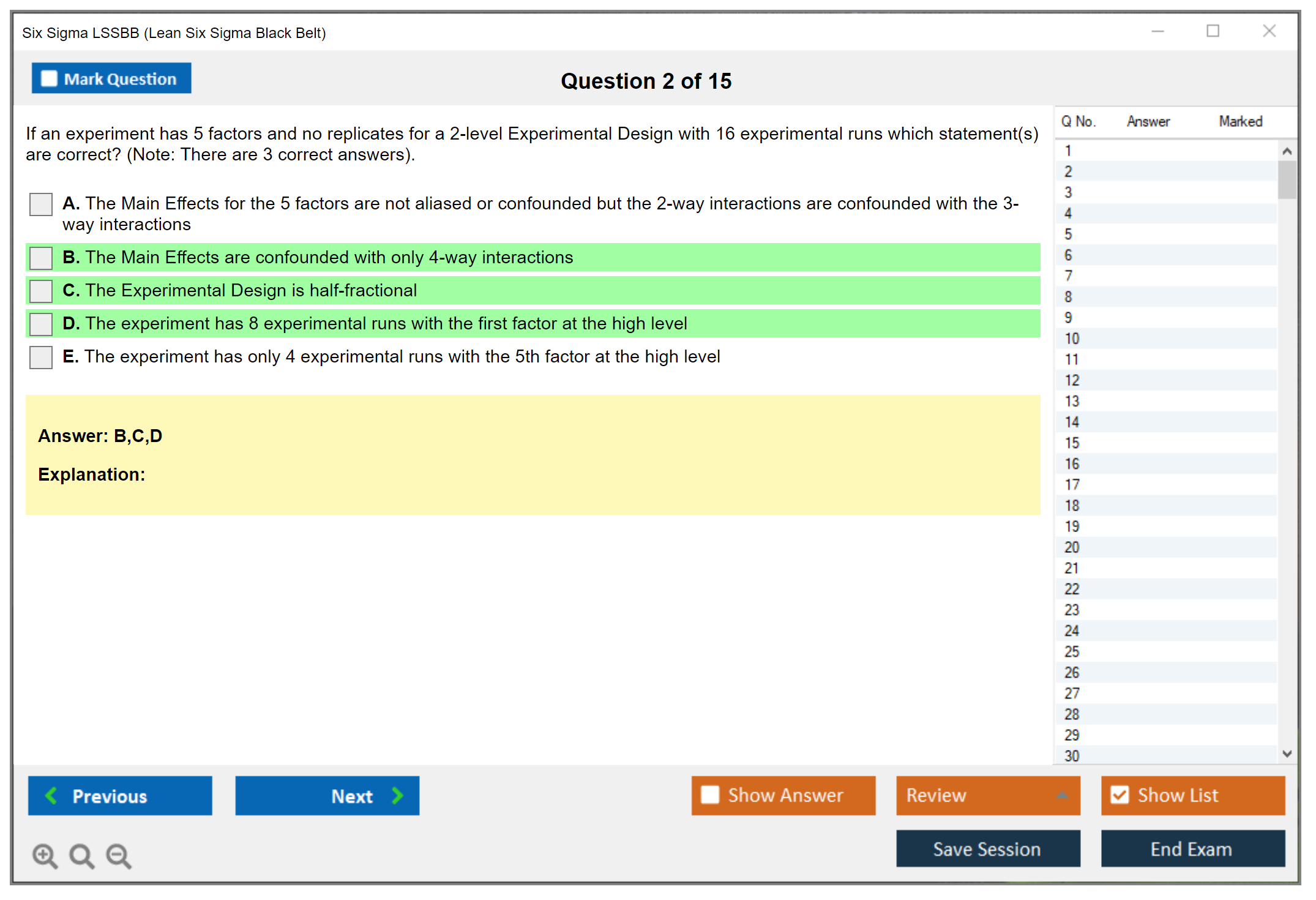 What are the Sample Questions of Six Sigma LSSBB Exam?