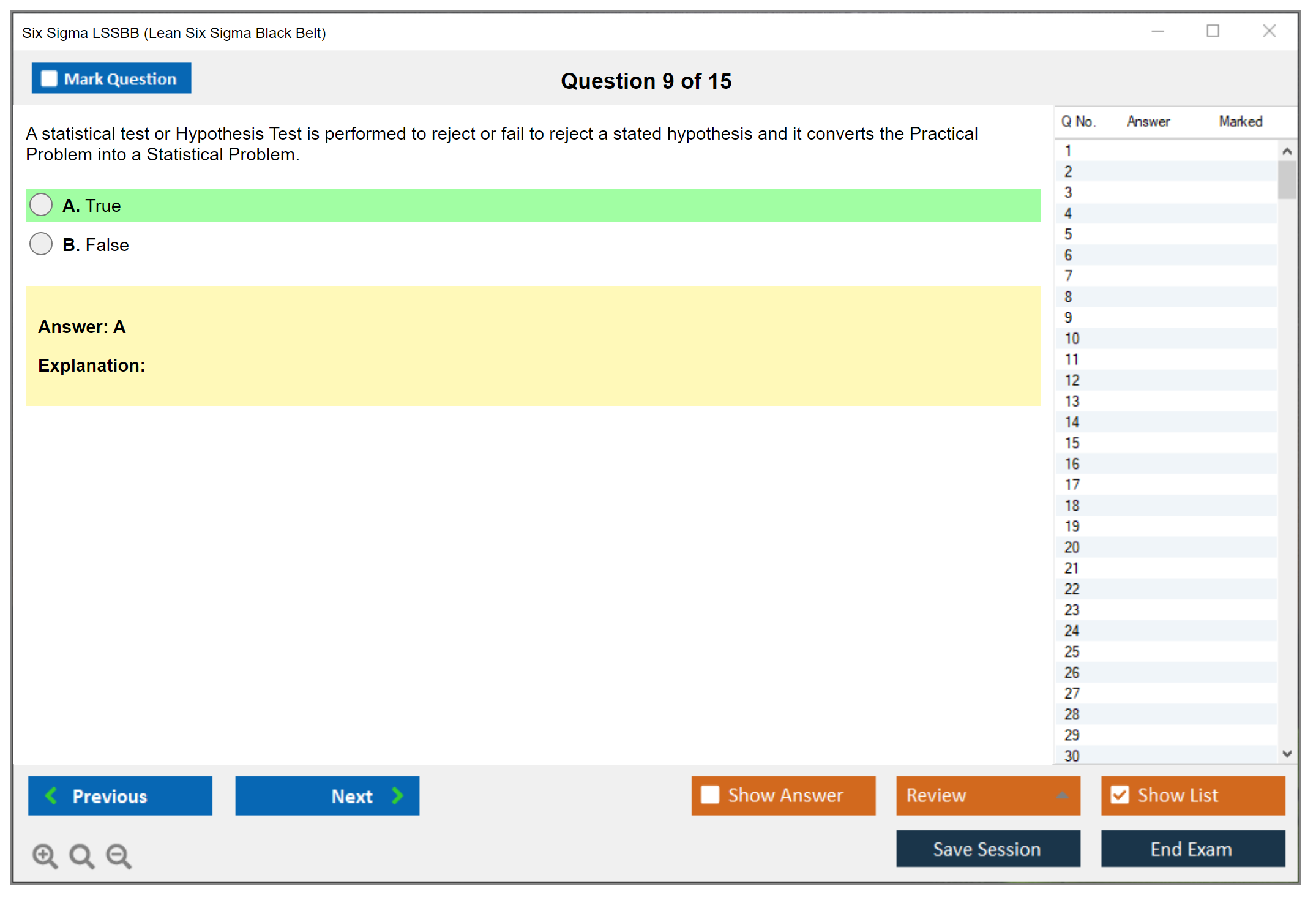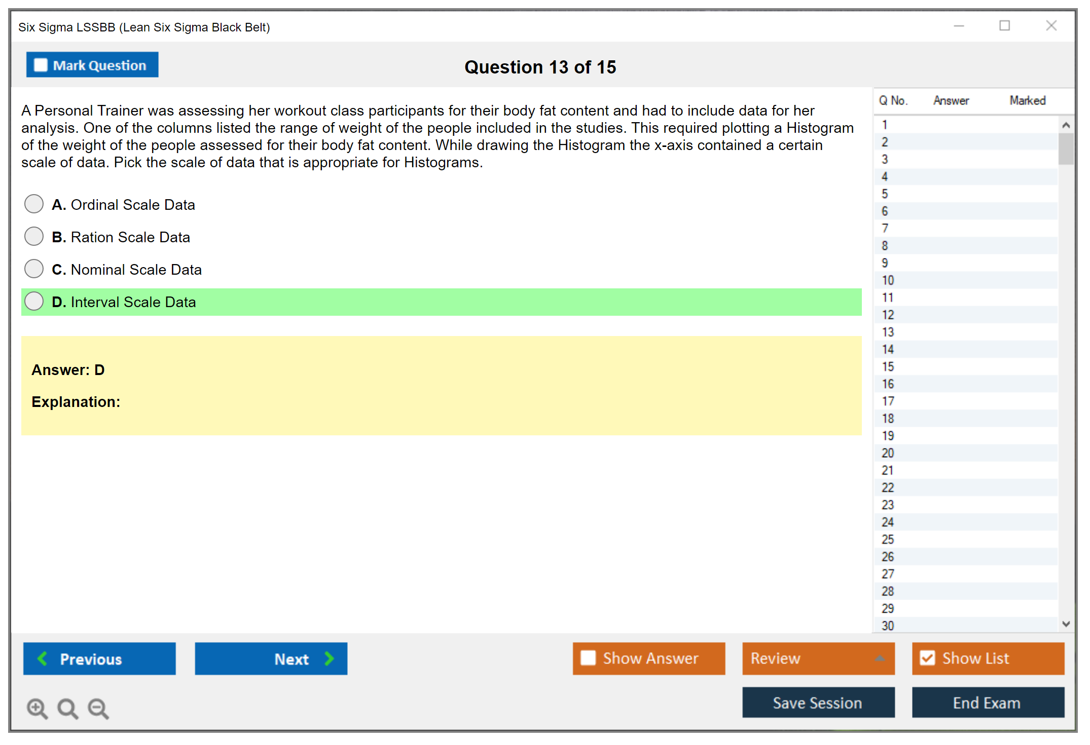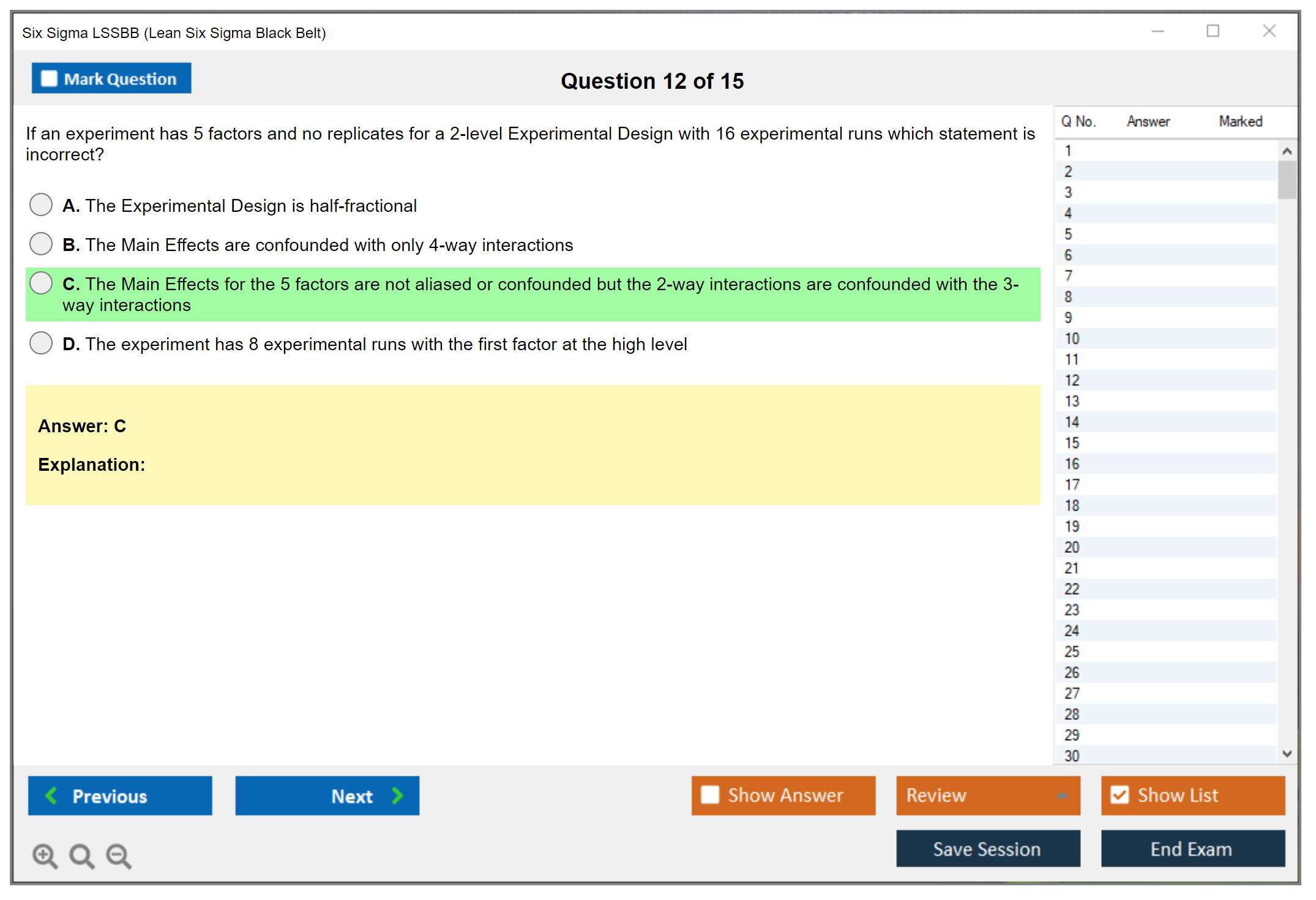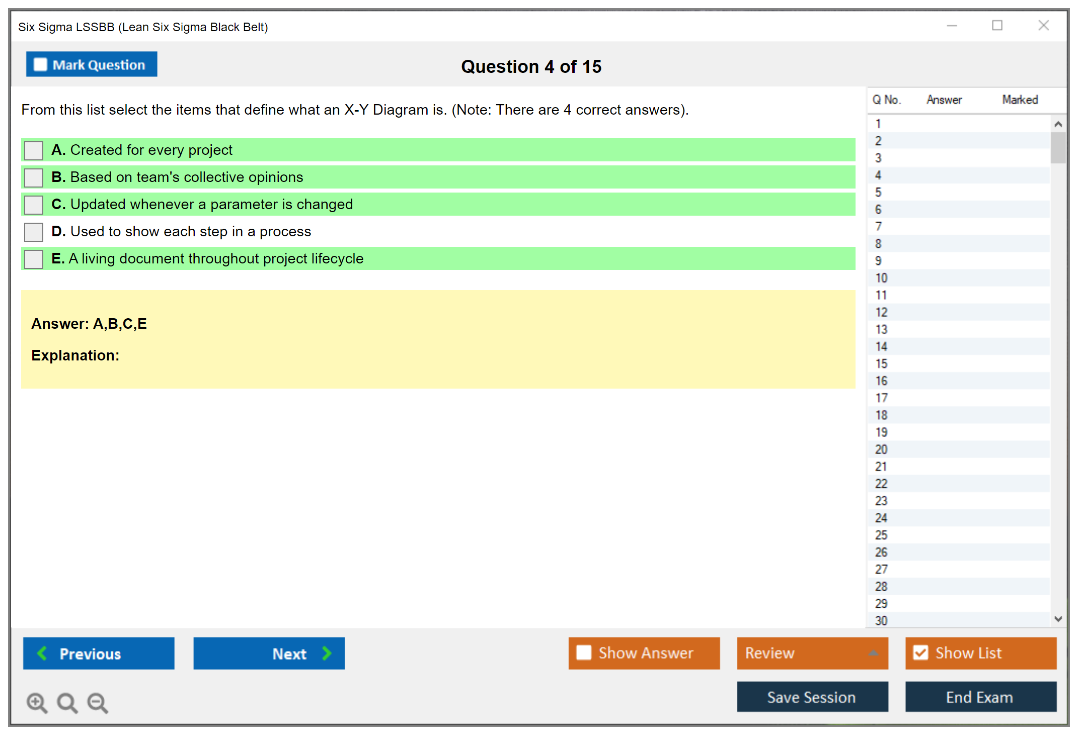 What are the Sample Questions of Six Sigma LSSBB Exam?