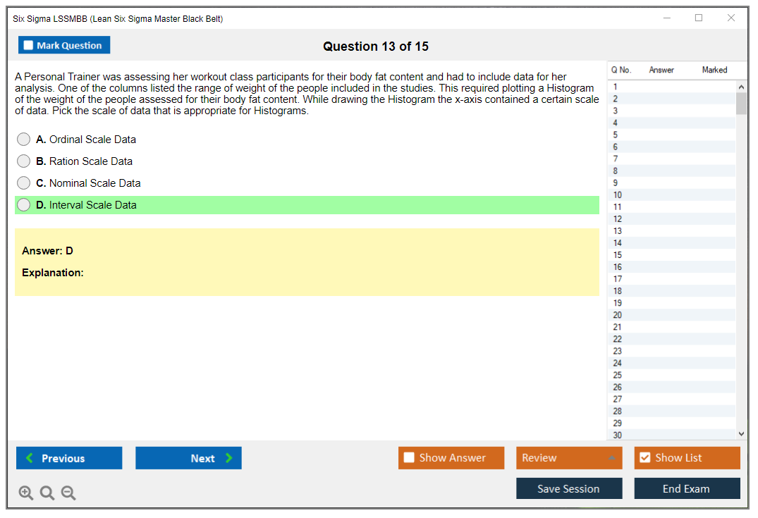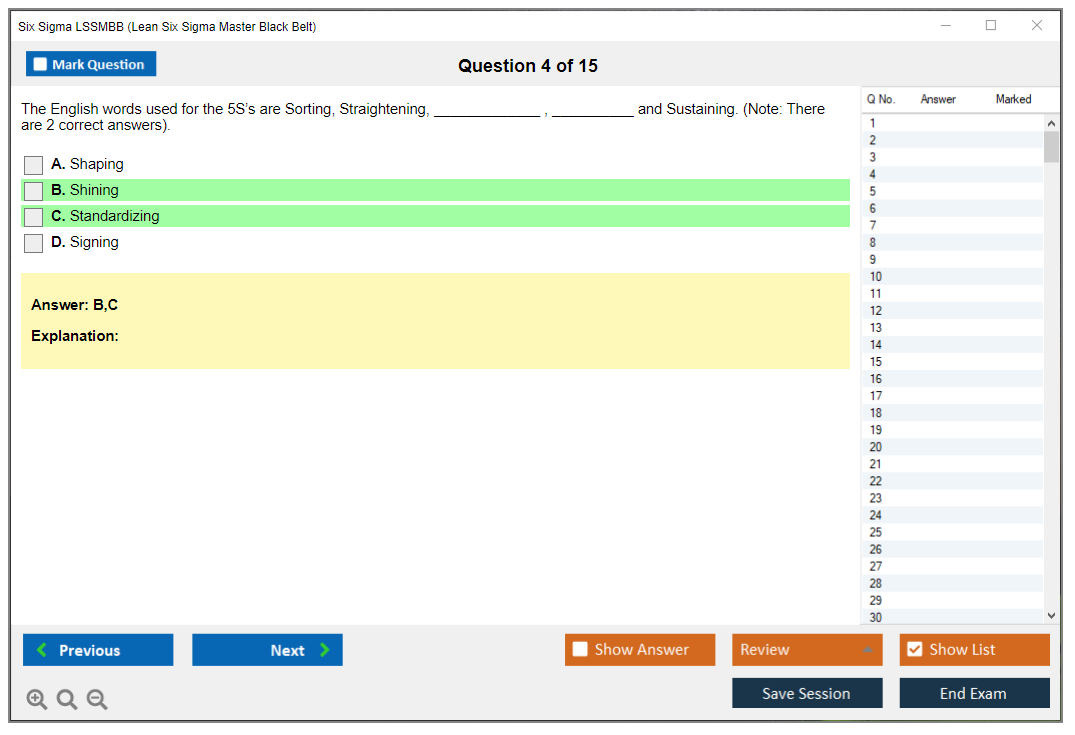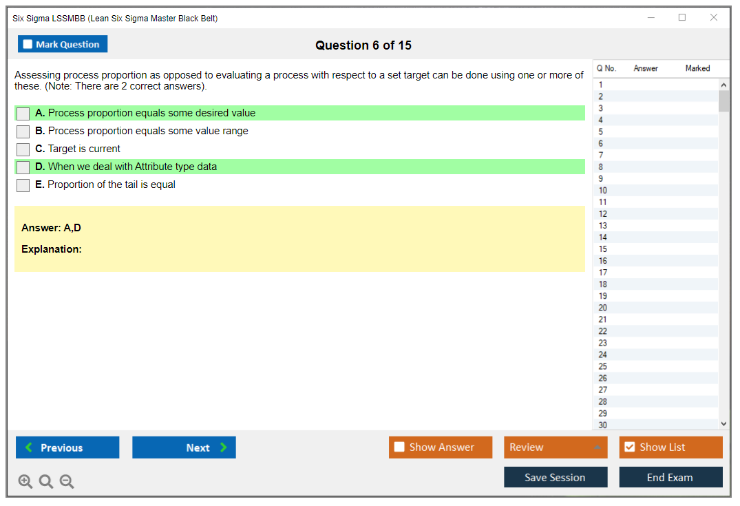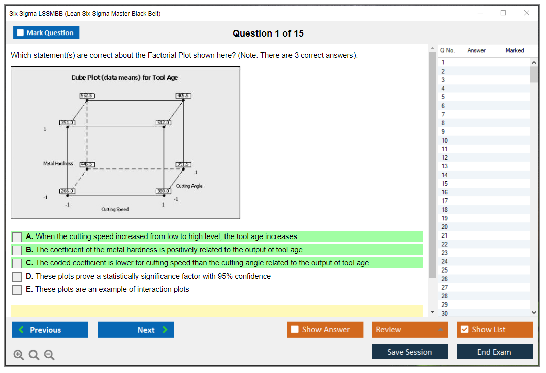 What is the Question Format of Six Sigma LSSMBB Exam?