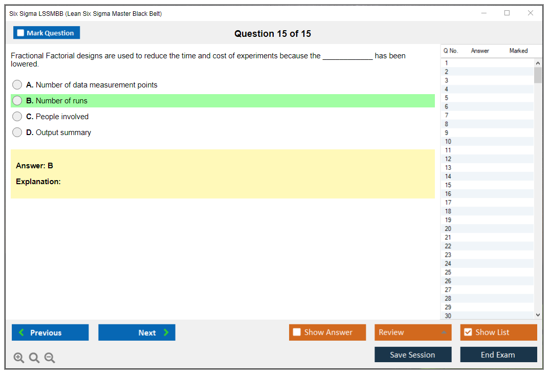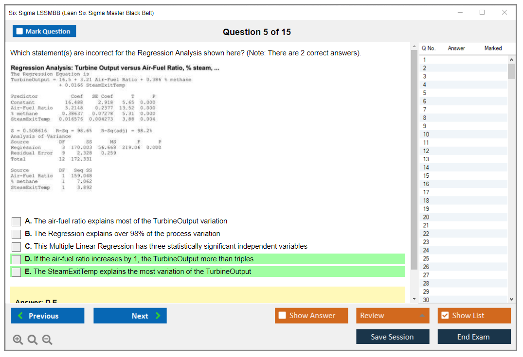 What are the Sample Questions of Six Sigma LSSMBB Exam?
