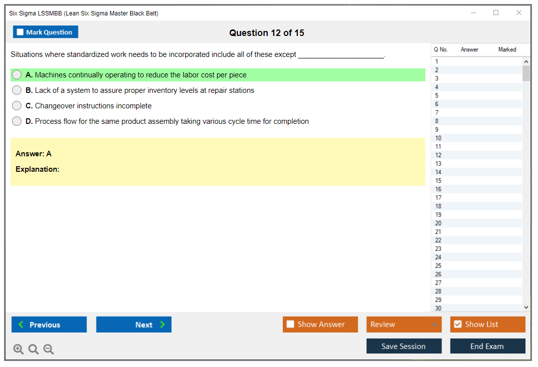 The Six Sigma Lean Six Sigma Master Black Belt (LSSMBB) Exam is a certification exam designed for professionals who have achieved a high level of expertise in the Six Sigma methodology. It validates their ability to lead complex projects, mentor others, and drive organizational improvements using Lean and Six Sigma principles.
