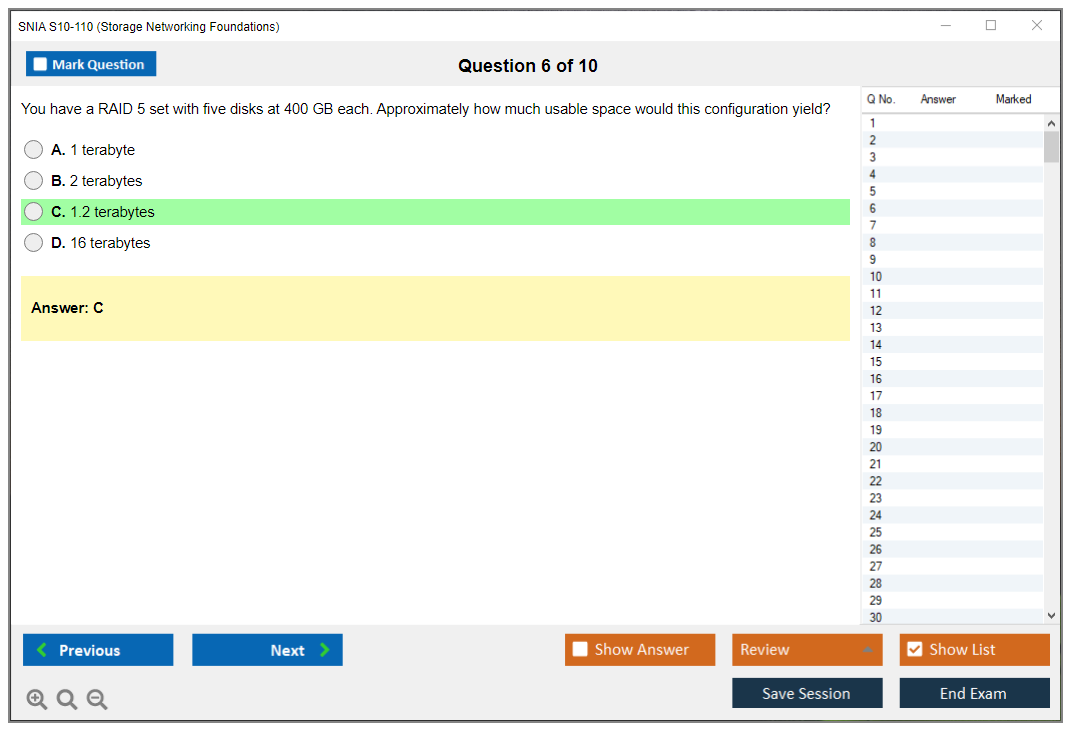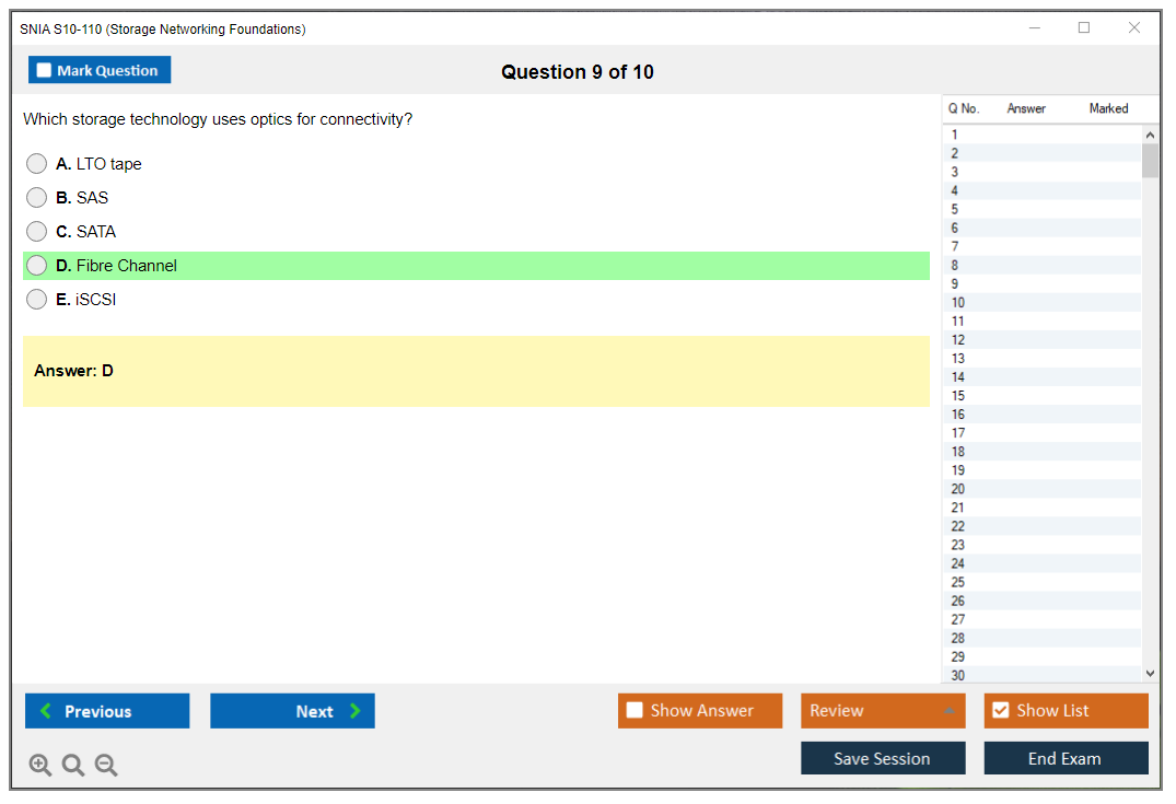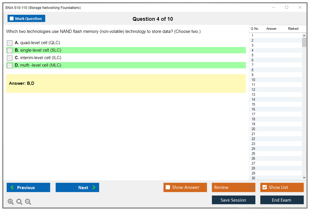 The SNIA S10-110 Exam consists of multiple-choice and multiple-response questions.