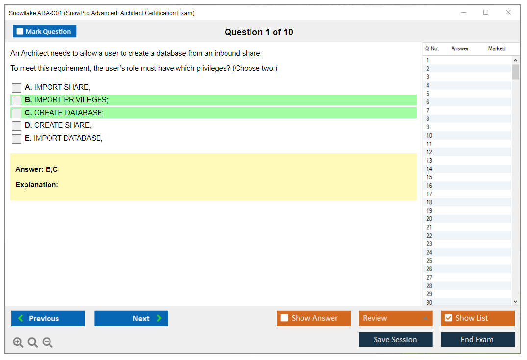 The question format of the Snowflake ARA-C01 Exam includes multiple-choice and multiple-select questions.