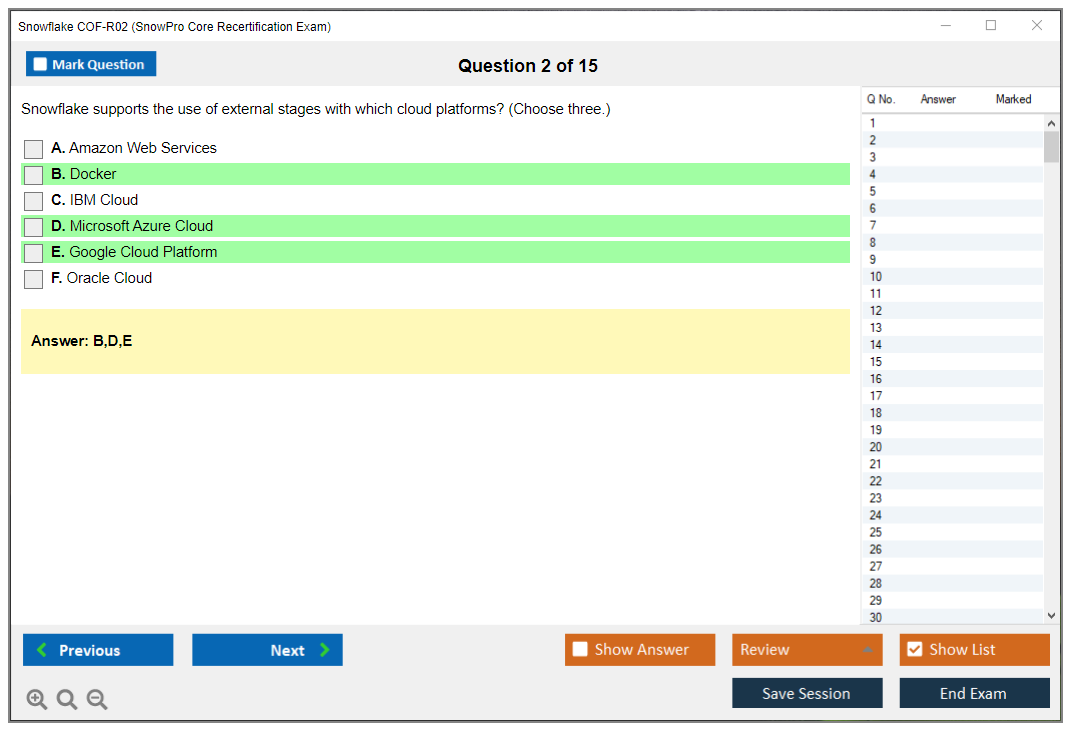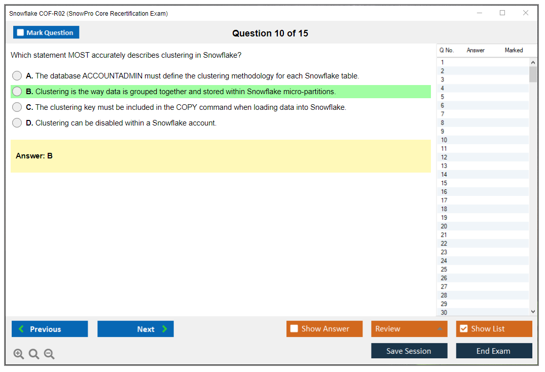 What are the Sample Questions of Snowflake COF-R02 Exam?