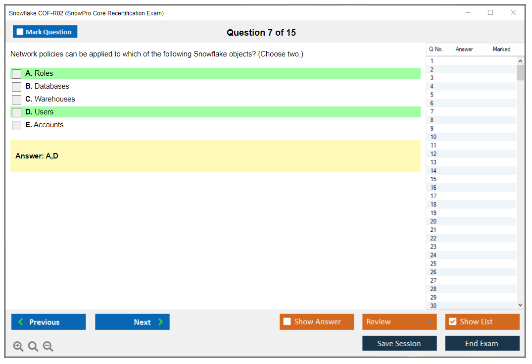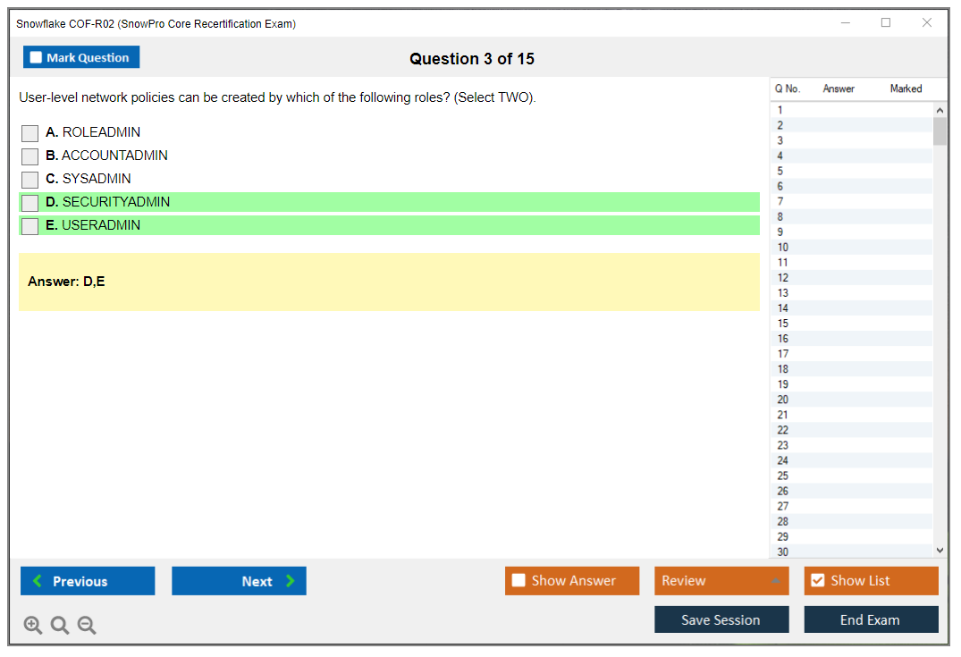 You can take the Snowflake COF-R02 Exam online through a proctored testing environment.