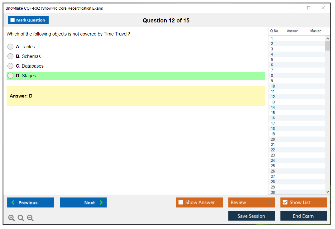 The Snowflake COF-R02 Exam is a recertification exam for the SnowPro Core Certification. It aims to validate the candidate's continued expertise in Snowflake's core features, architecture, and best practices.