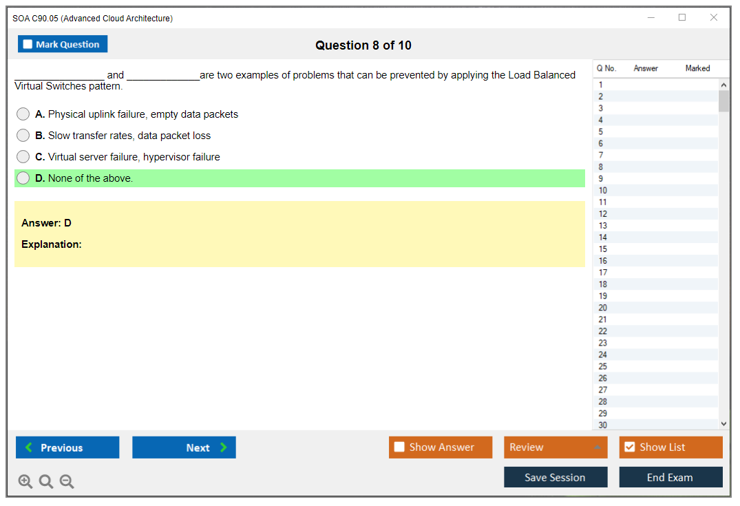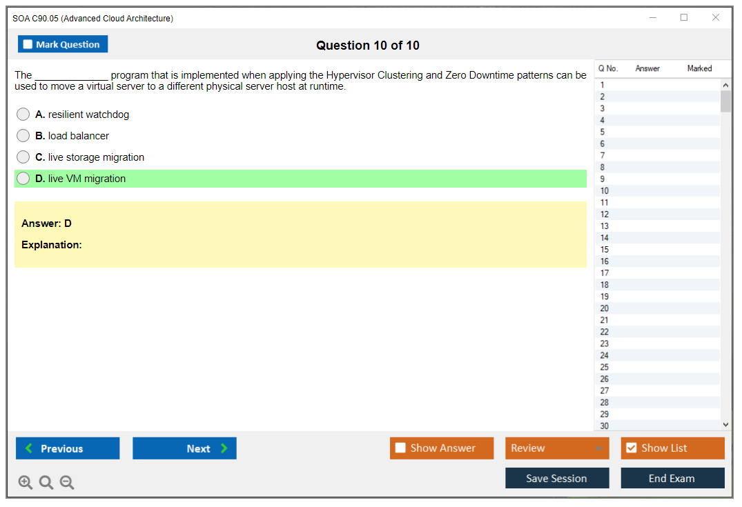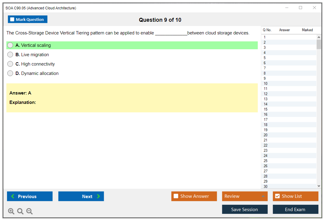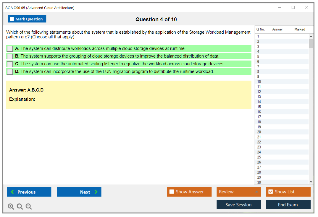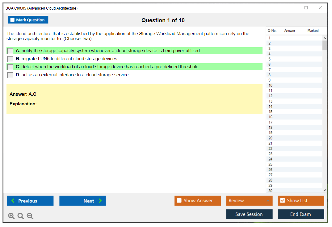 The SOA C90.05 (Advanced Cloud Architecture) Exam is designed to assess advanced knowledge and skills in cloud architecture, focusing on complex cloud-based systems and solutions.