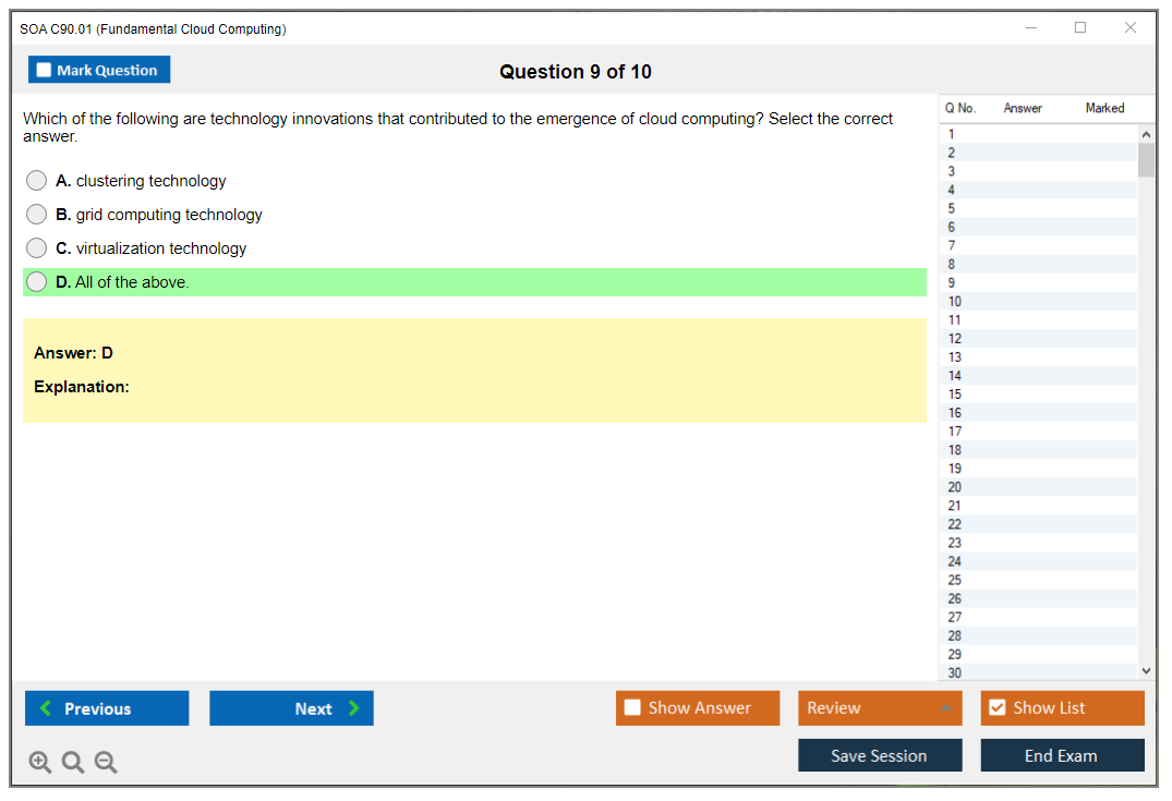 The SOA C90.01 (Fundamental Cloud Computing) Exam is designed to test the foundational knowledge of cloud computing concepts, architecture, and technology. It covers a broad range of topics essential for understanding cloud computing.