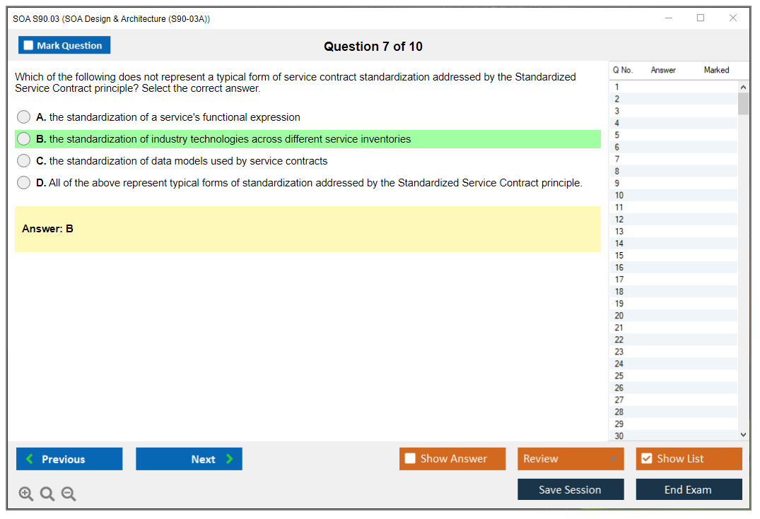 The SOA S90.03 (SOA Design & Architecture) Exam is a certification exam designed to test the knowledge and skills of individuals in service-oriented architecture (SOA) design and architecture principles.