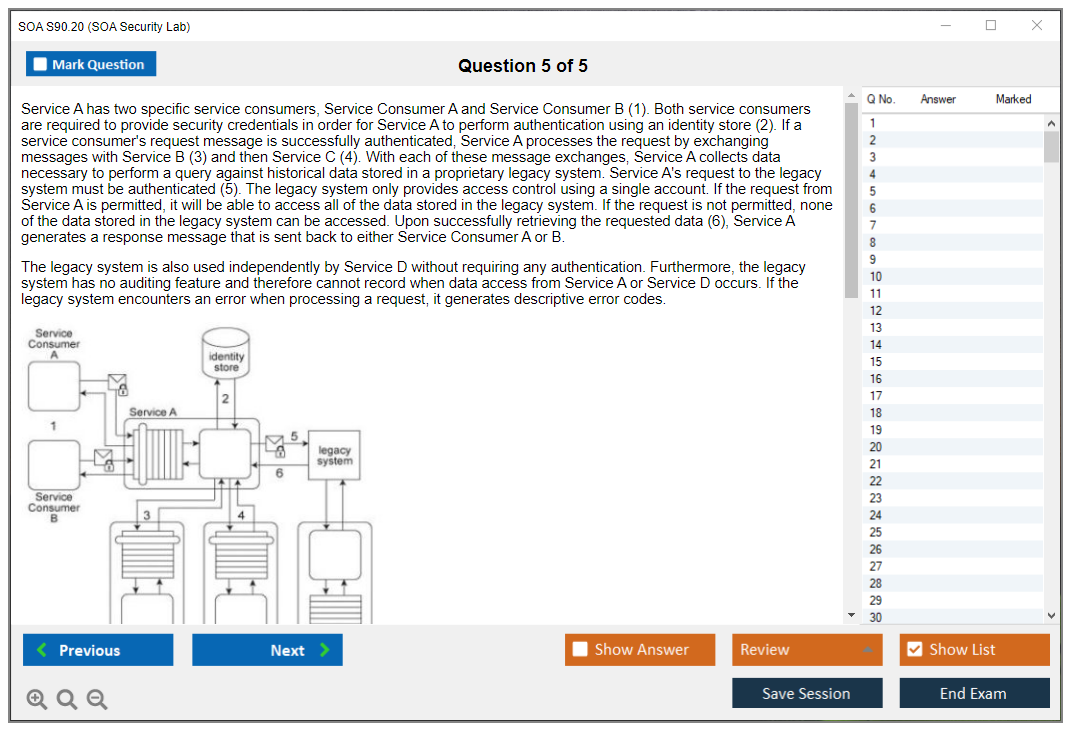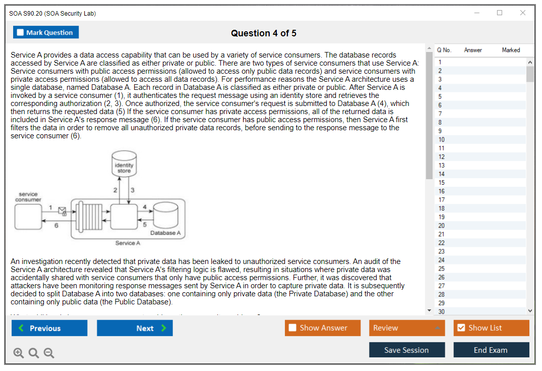 The SOA S90.20 (SOA Security Lab) Exam is a specialized certification exam that focuses on the security aspects of Service-Oriented Architecture (SOA). It is designed to test the candidate's knowledge and skills in implementing and managing security within SOA environments.
