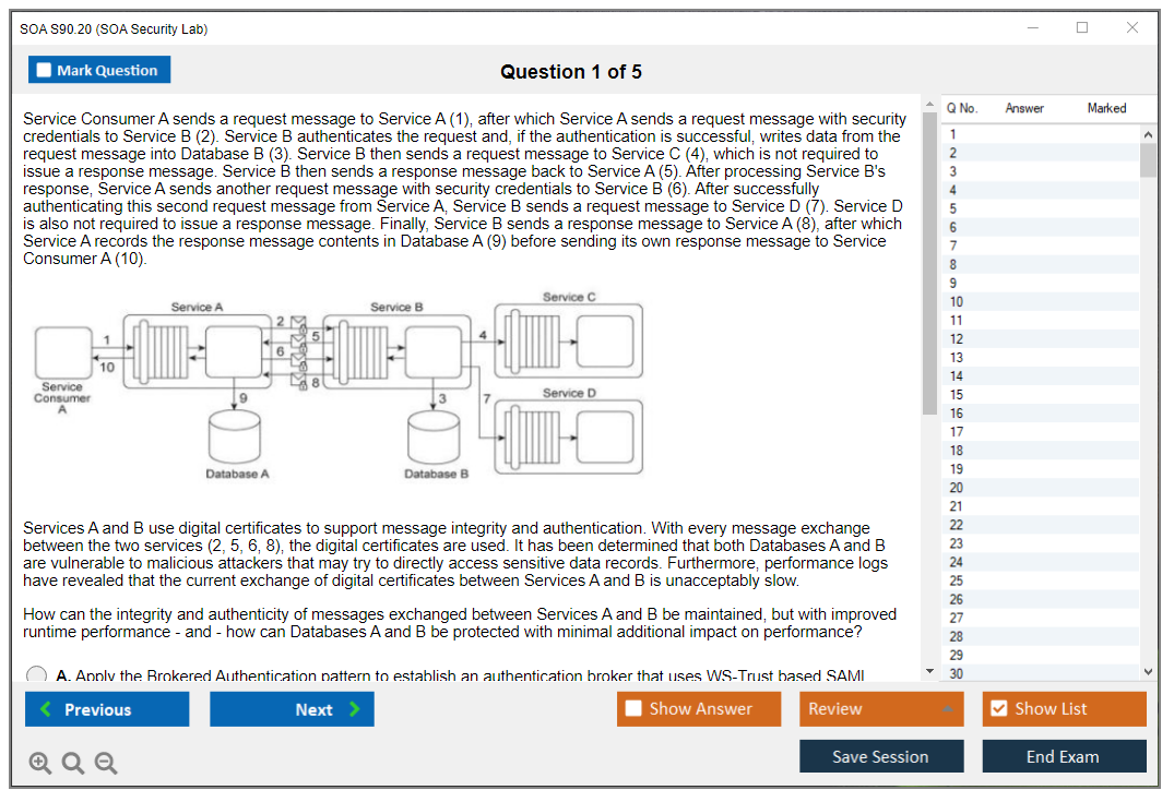 The question format of the SOA S90.20 Exam includes multiple-choice questions, scenario-based questions, and possibly some hands-on lab exercises.