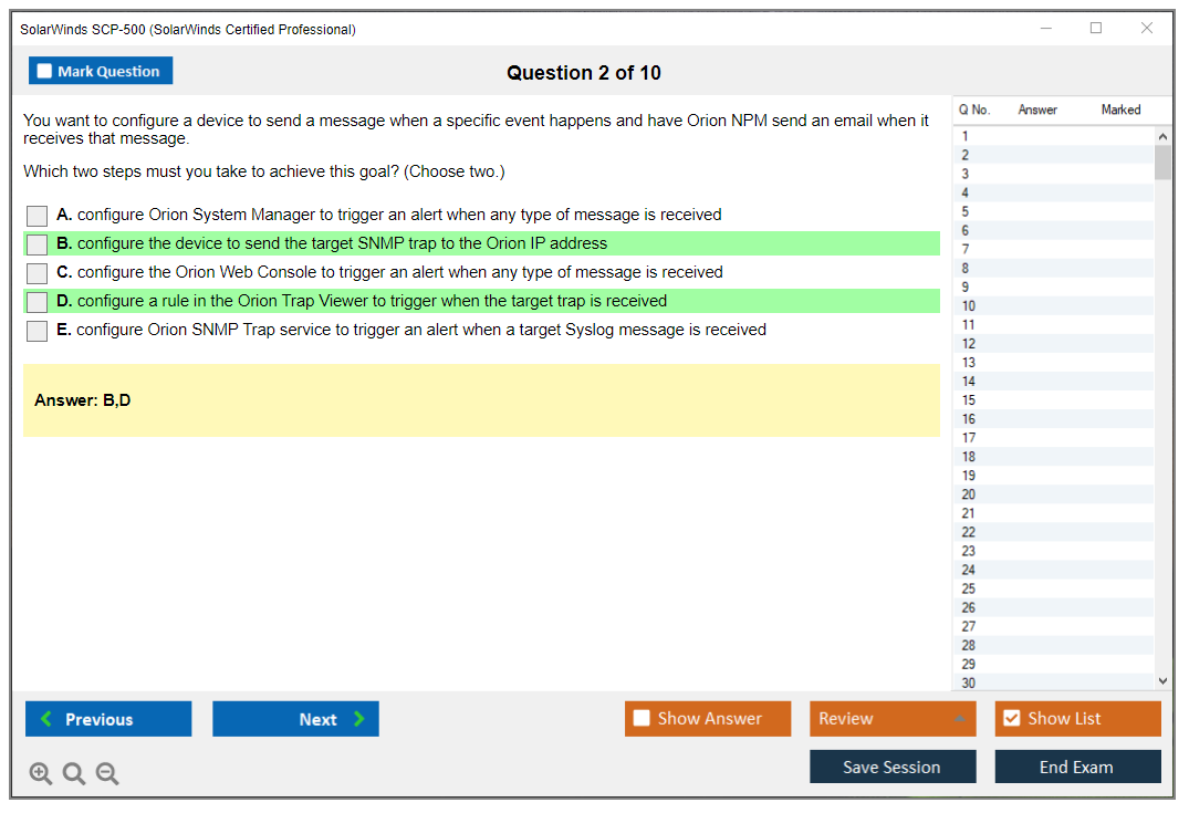What are the Sample Questions of SolarWinds SCP-500 Exam?