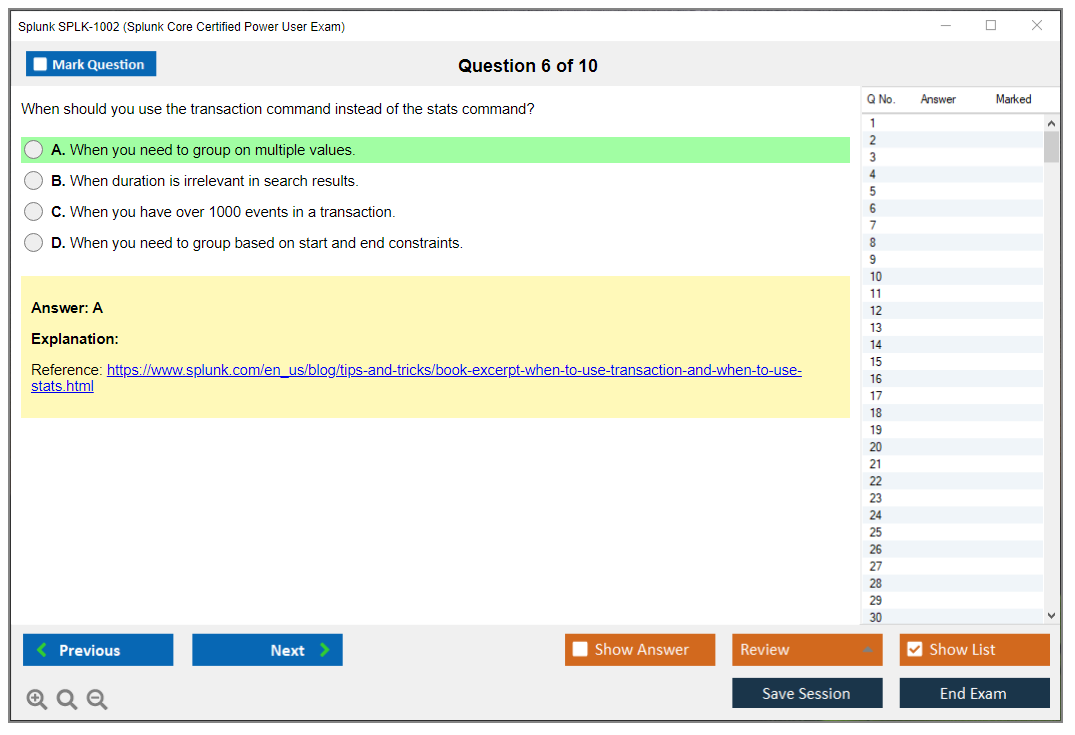 The Splunk SPLK-1002 (Splunk Core Certified Power User) Exam is designed to evaluate a candidate's knowledge and skills in using Splunk software for searching, monitoring, and analyzing machine-generated big data through a web-style interface.