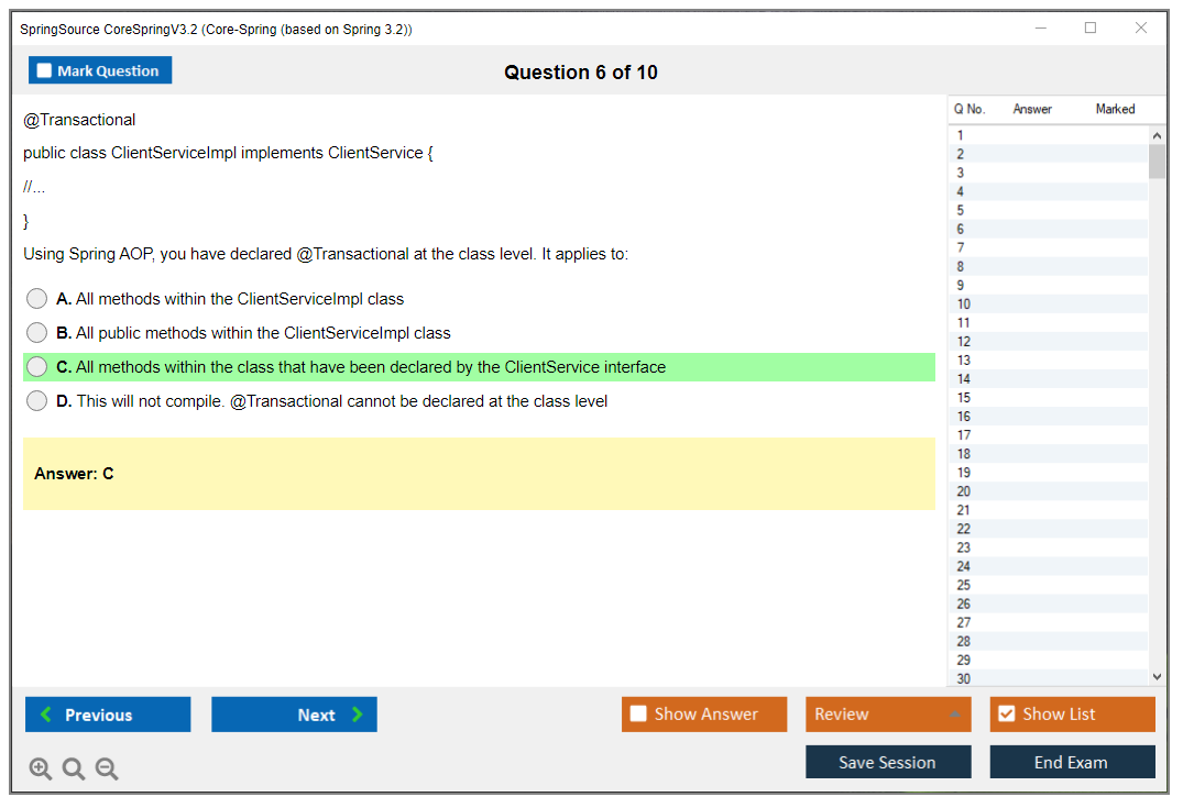 What is the Question Format of SpringSource CoreSpringV3.2 Exam?