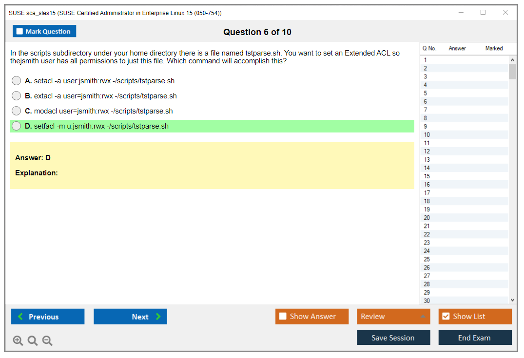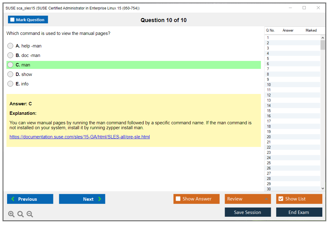 The SUSE Certified Administrator in Enterprise Linux 15 (sca_sles15) exam is designed to validate the foundational skills and knowledge required to administer SUSE Linux Enterprise Server 15. This certification demonstrates proficiency in managing, maintaining, and troubleshooting SUSE Linux Enterprise Server environments.