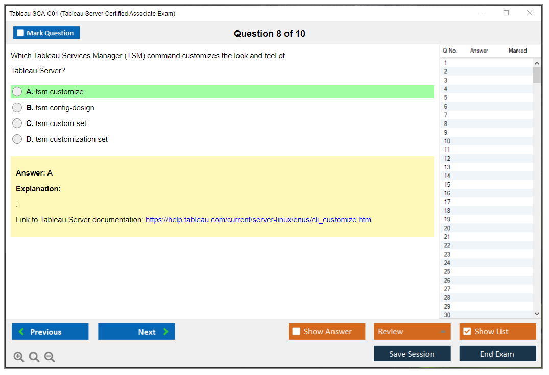 The Tableau SCA-C01 Exam is a certification exam for individuals who want to demonstrate their expertise in managing and maintaining Tableau Server. It tests the candidate's knowledge of server architecture, security, user management, and performance optimization.