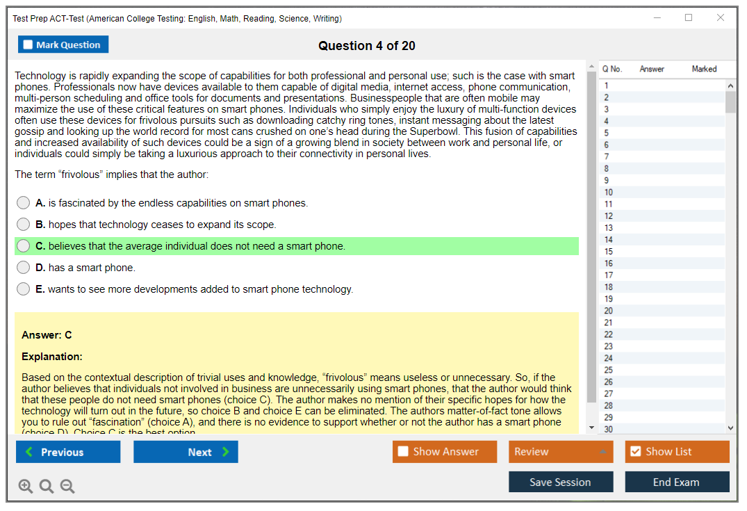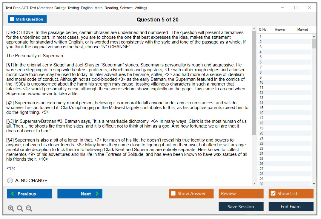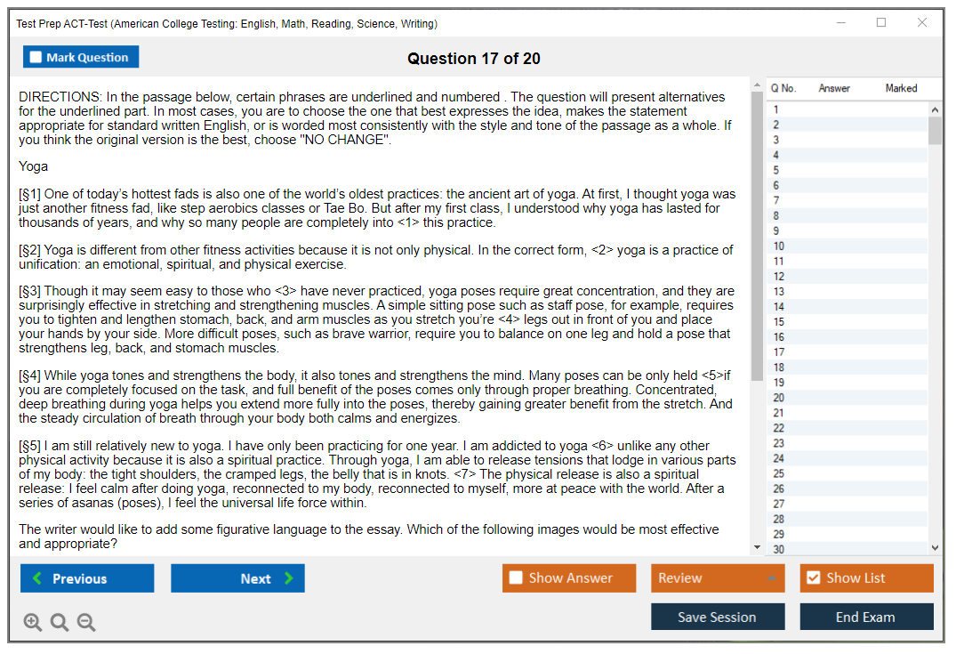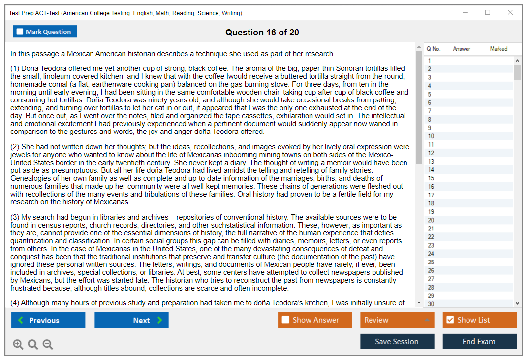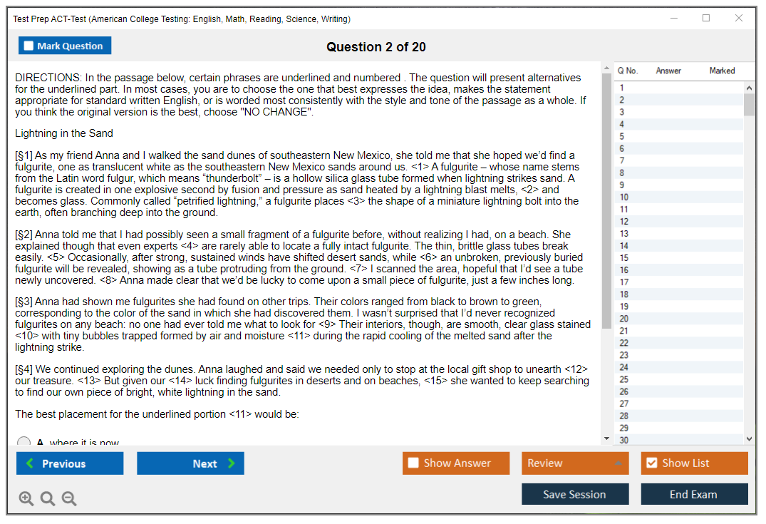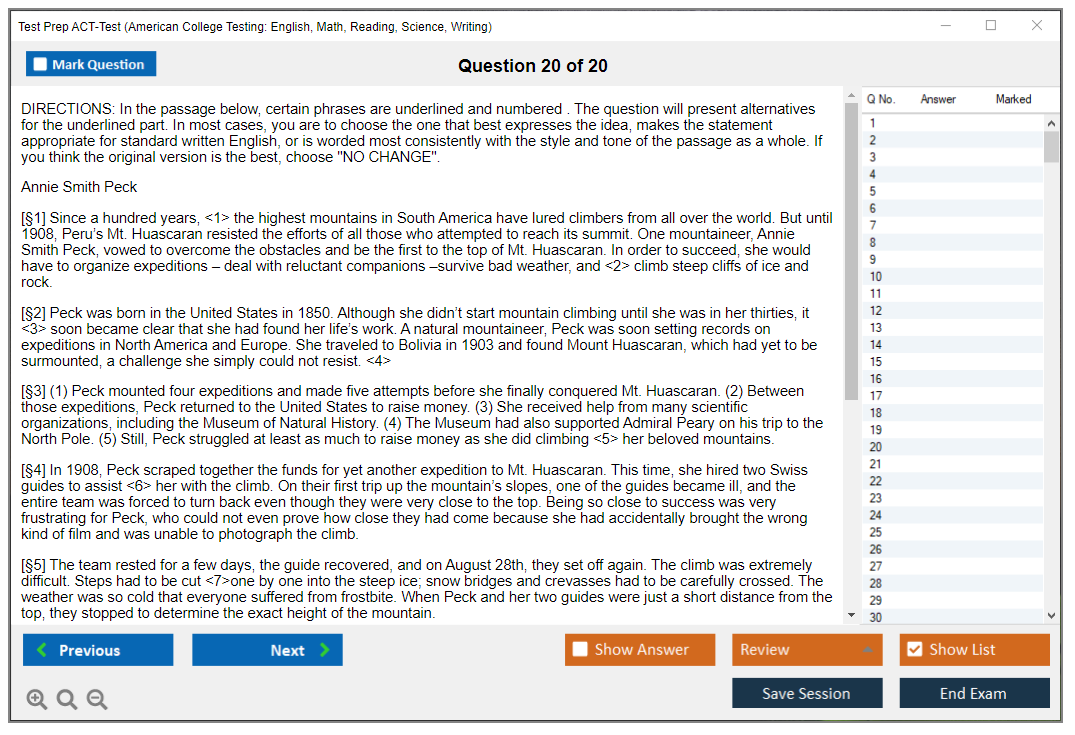 What are the Sample Questions of Test Prep ACT-Test Exam?