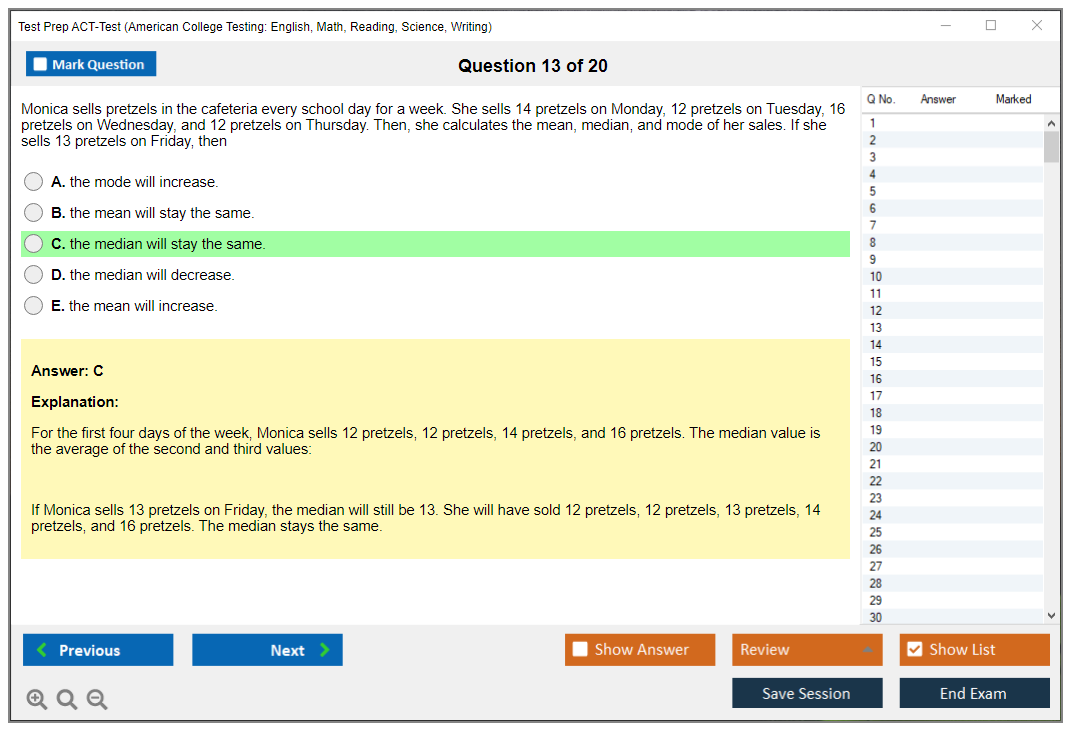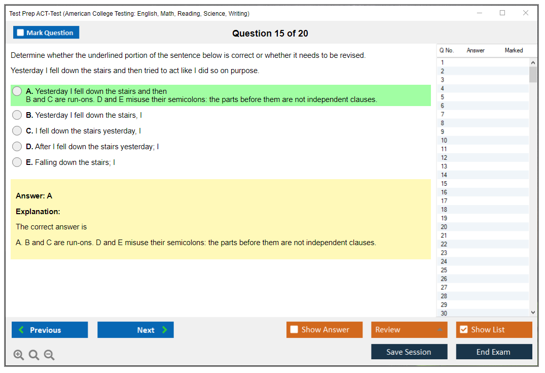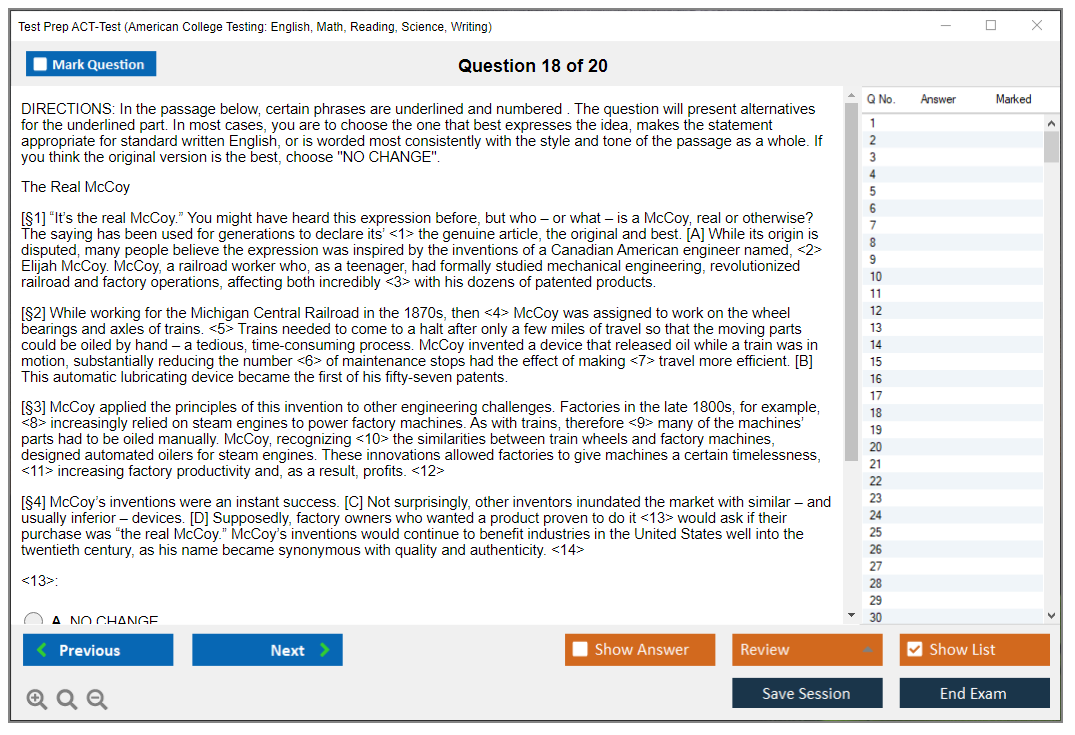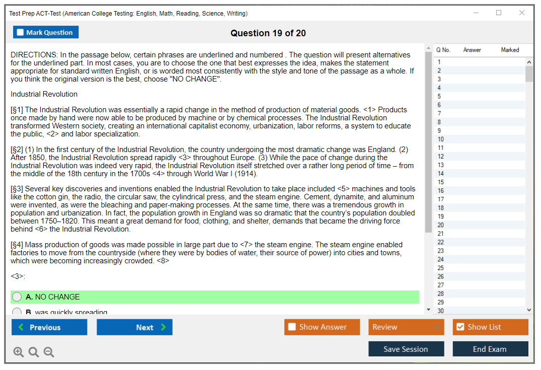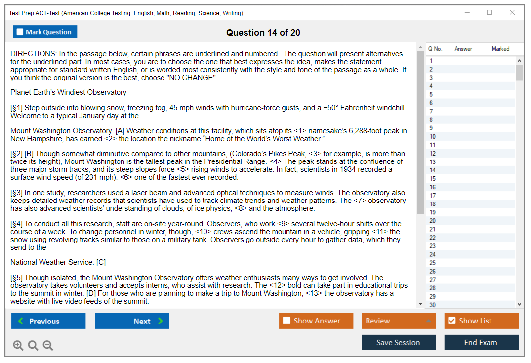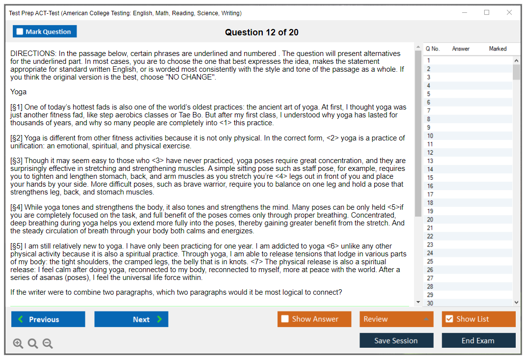 What are the Sample Questions of Test Prep ACT-Test Exam?