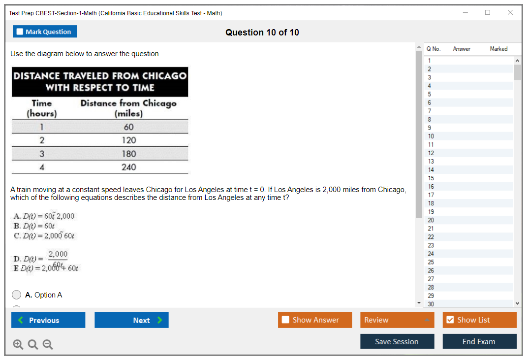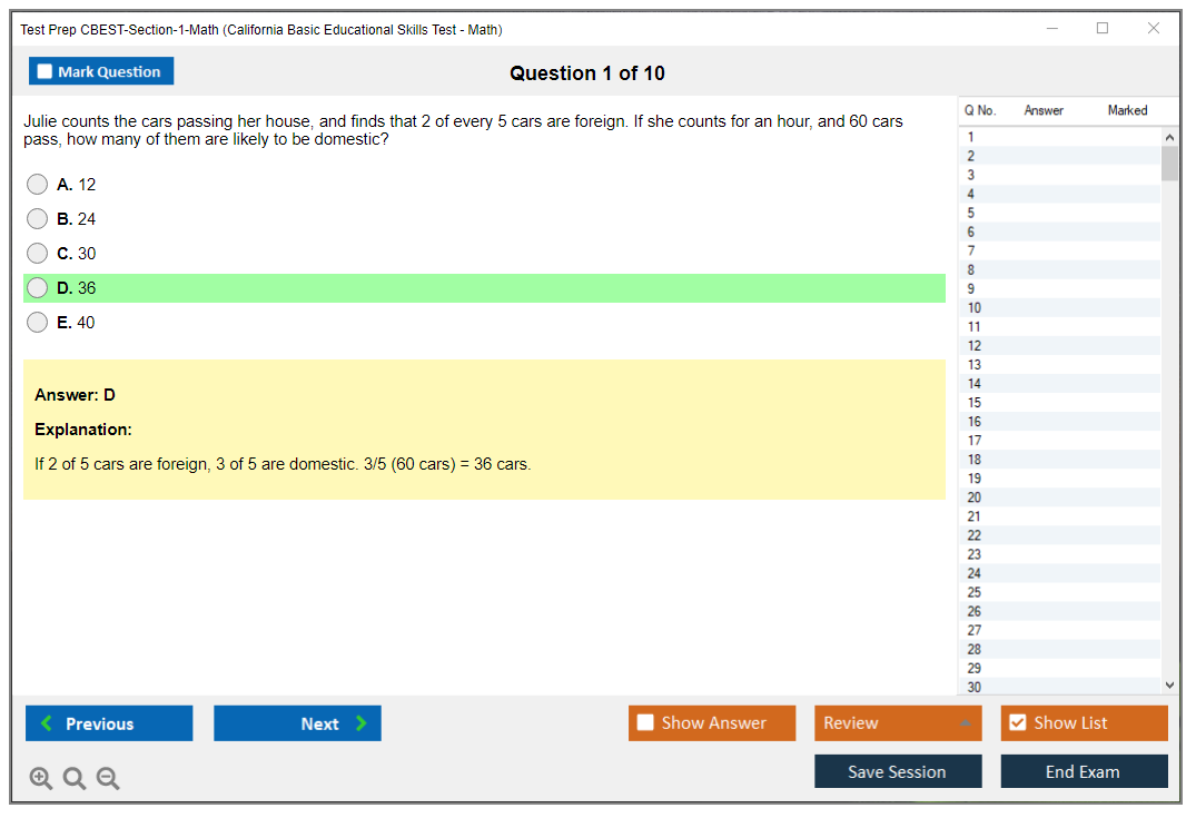 What are the Number of Questions Asked in Test Prep CBEST-Section-1-Math Exam?