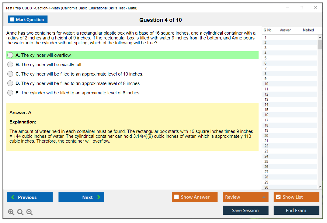 What is the Question Format of Test Prep CBEST-Section-1-Math Exam?