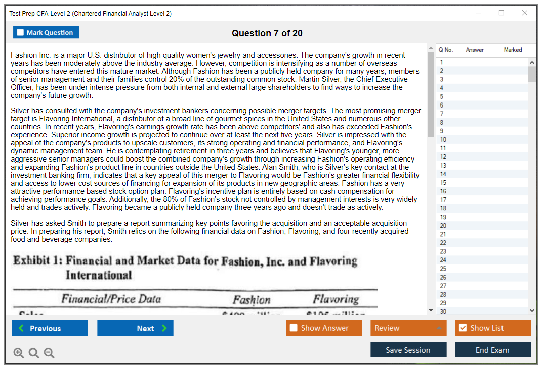 What is the Question Format of Test Prep CFA-Level-2 Exam?