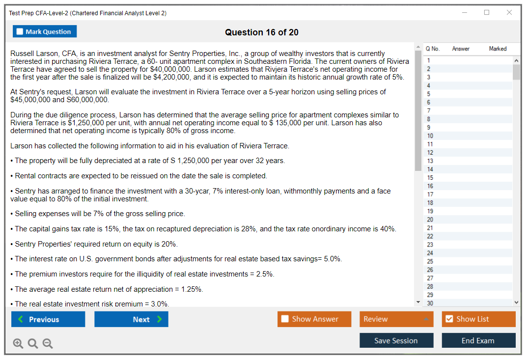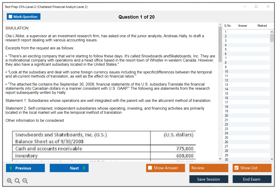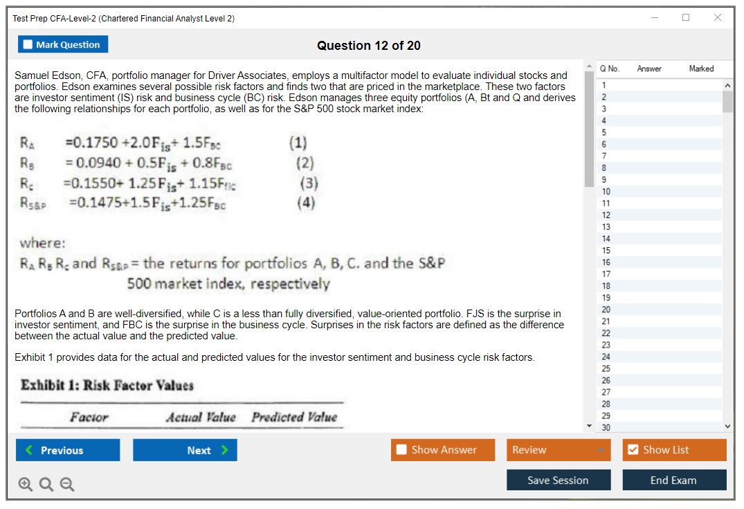 What are the Sample Questions of Test Prep CFA-Level-2 Exam?
