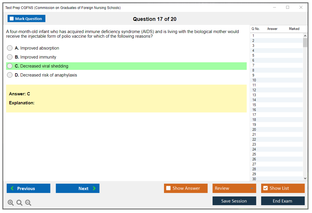 The question format of the Test Prep CGFNS Exam consists mainly of multiple-choice questions.
