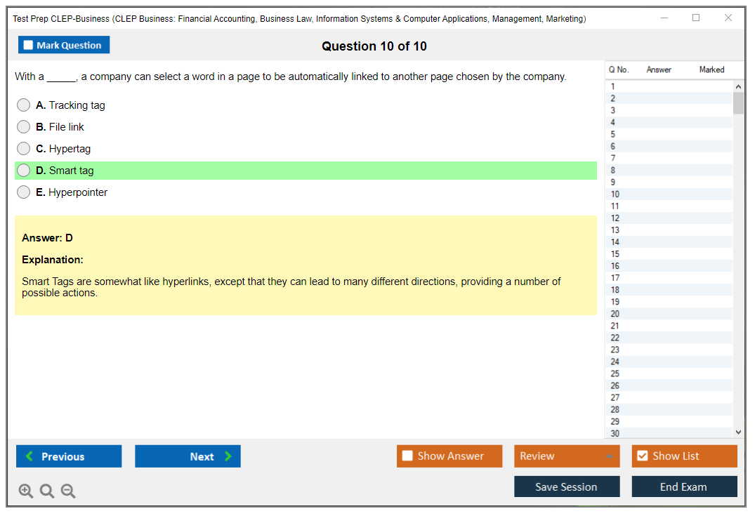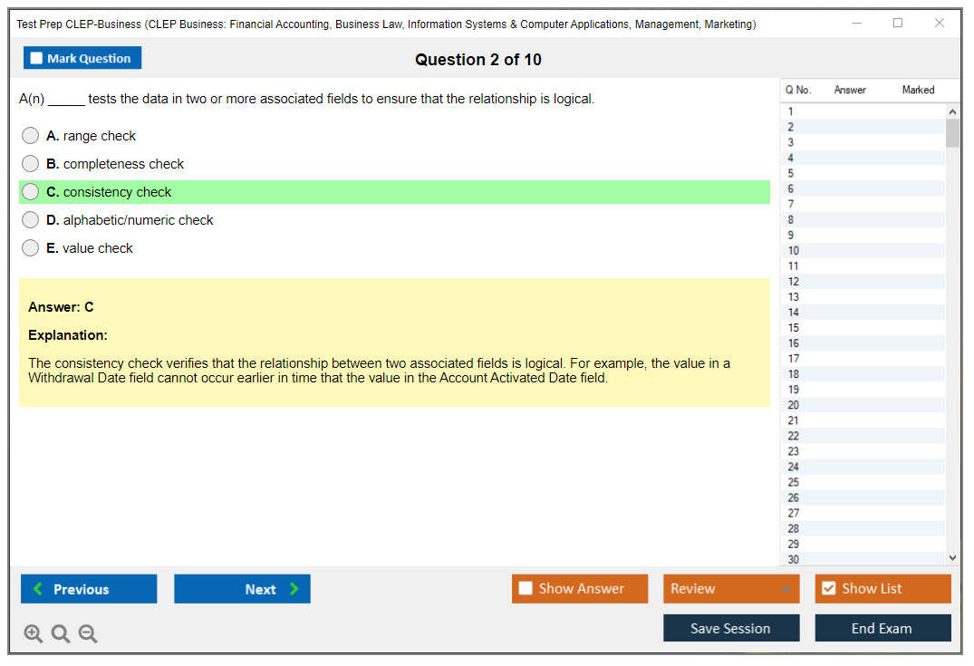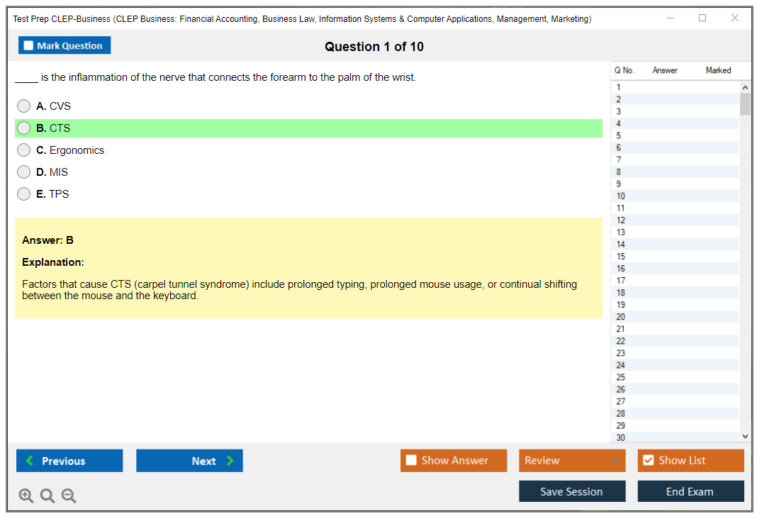 The question format of the Test Prep CLEP-Business exam is primarily multiple-choice.