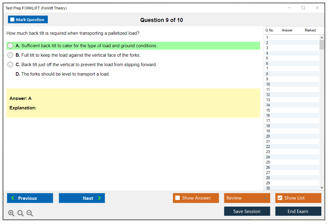 What are the Sample Questions of Test Prep FORKLIFT Exam?