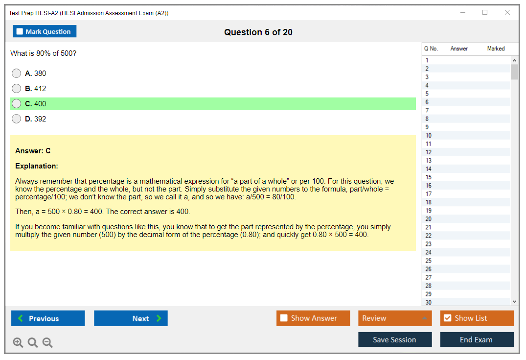 What are the Number of Questions Asked in Test Prep HESI-A2 Exam?