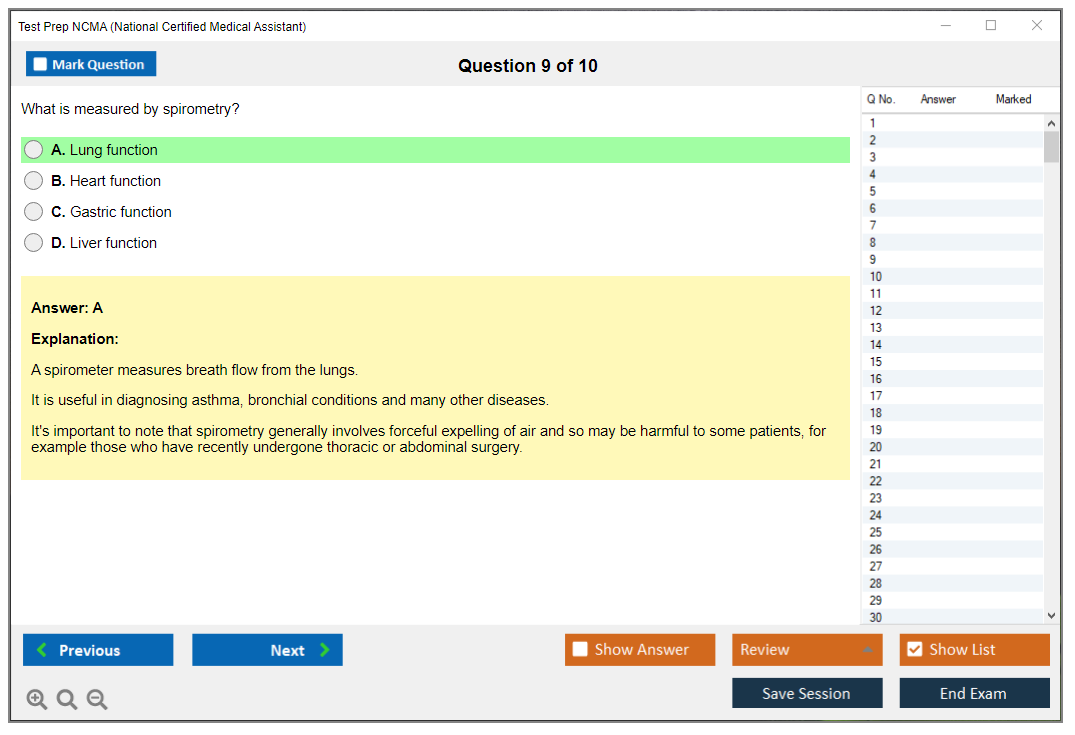 The question format of the Test Prep NCMA Exam includes multiple-choice questions.