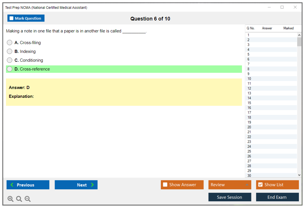 You can take the Test Prep NCMA Exam at an NCCT-authorized testing center or via an online proctored exam.