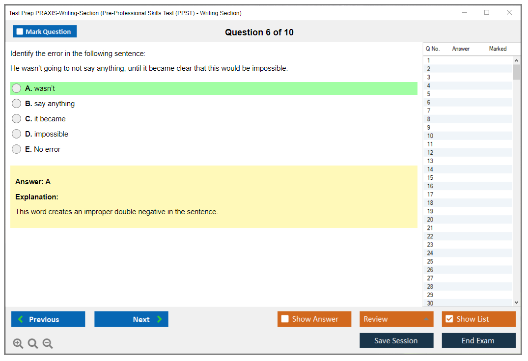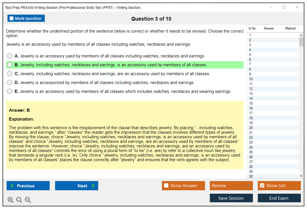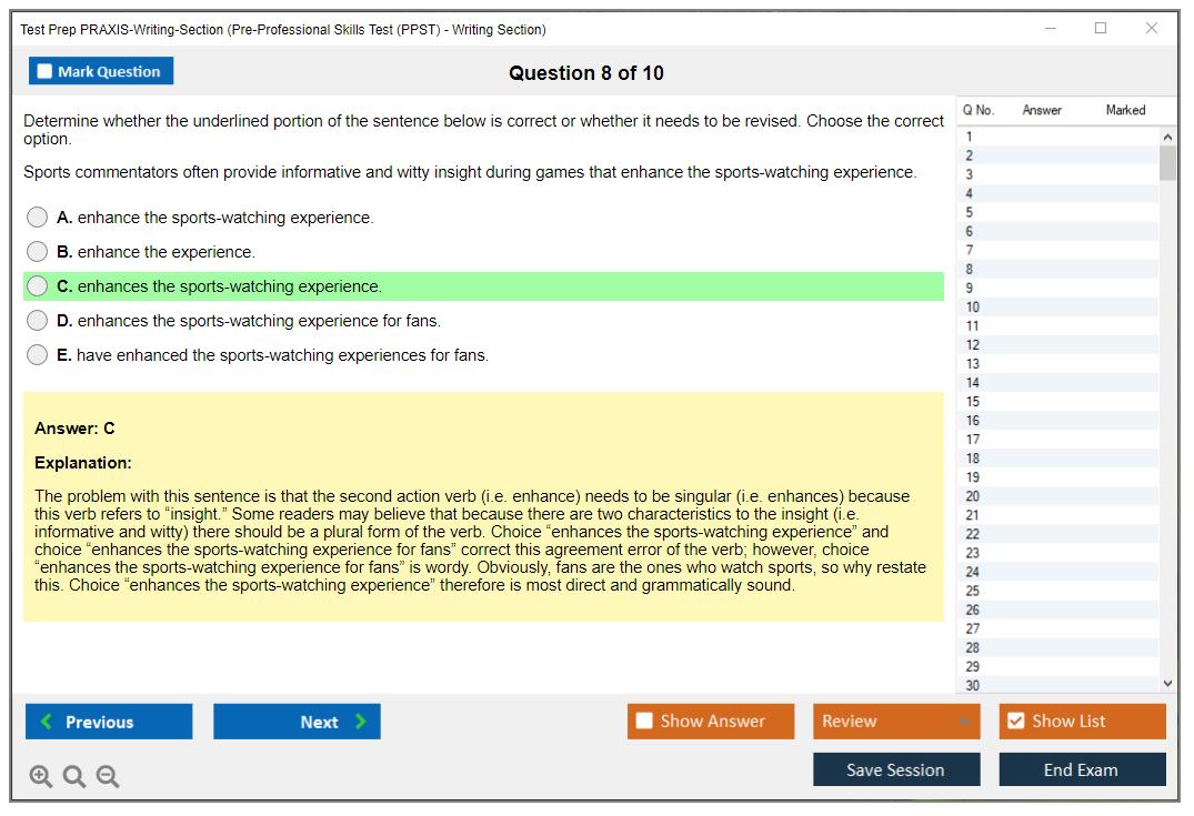 What are the Sample Questions of Test Prep PRAXIS-Writing-Section Exam?