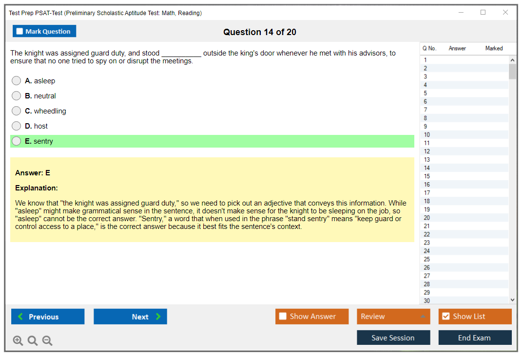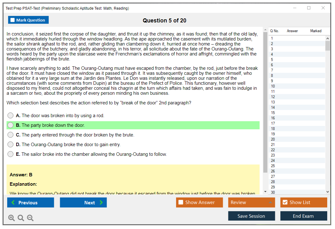 What are the Sample Questions of Test Prep PSAT-Test Exam?