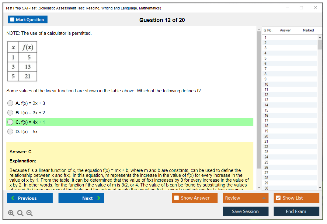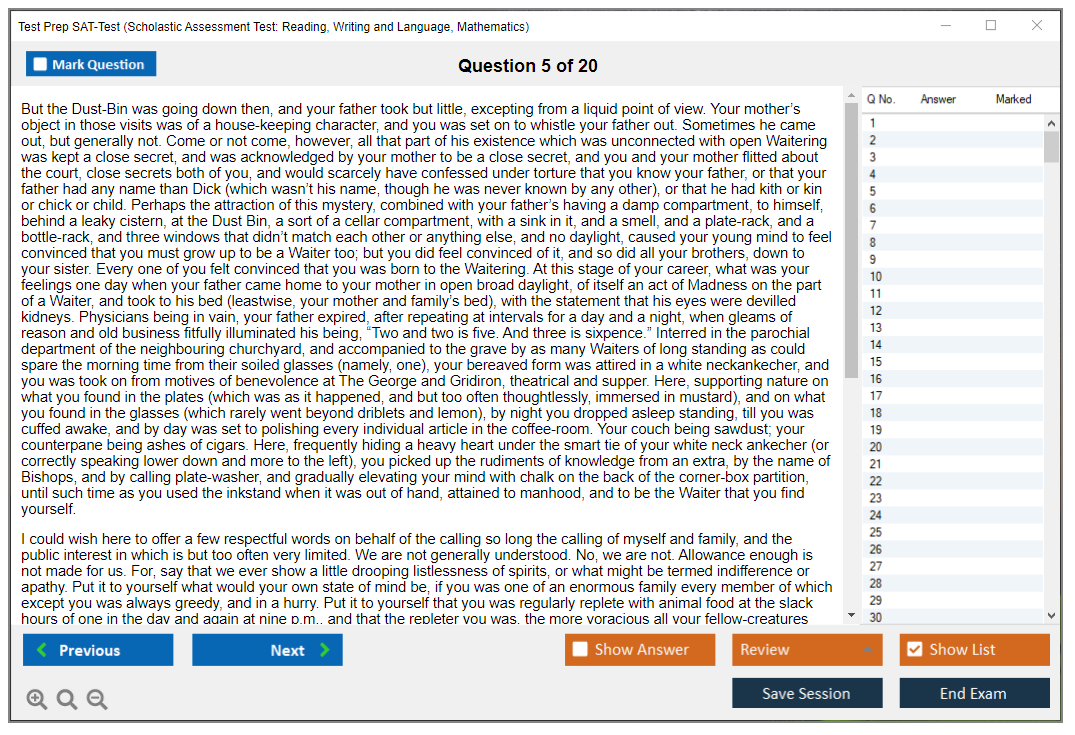 What are the Number of Questions Asked in Test Prep SAT-Test Exam?