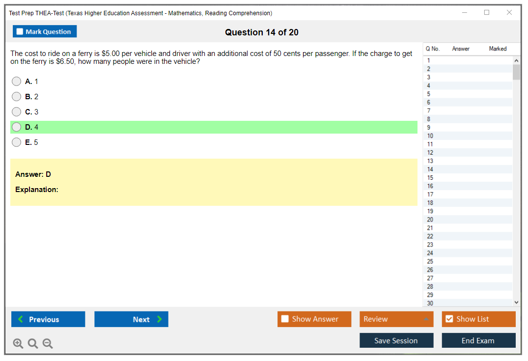What are the Number of Questions Asked in Test Prep THEA-Test Exam?
