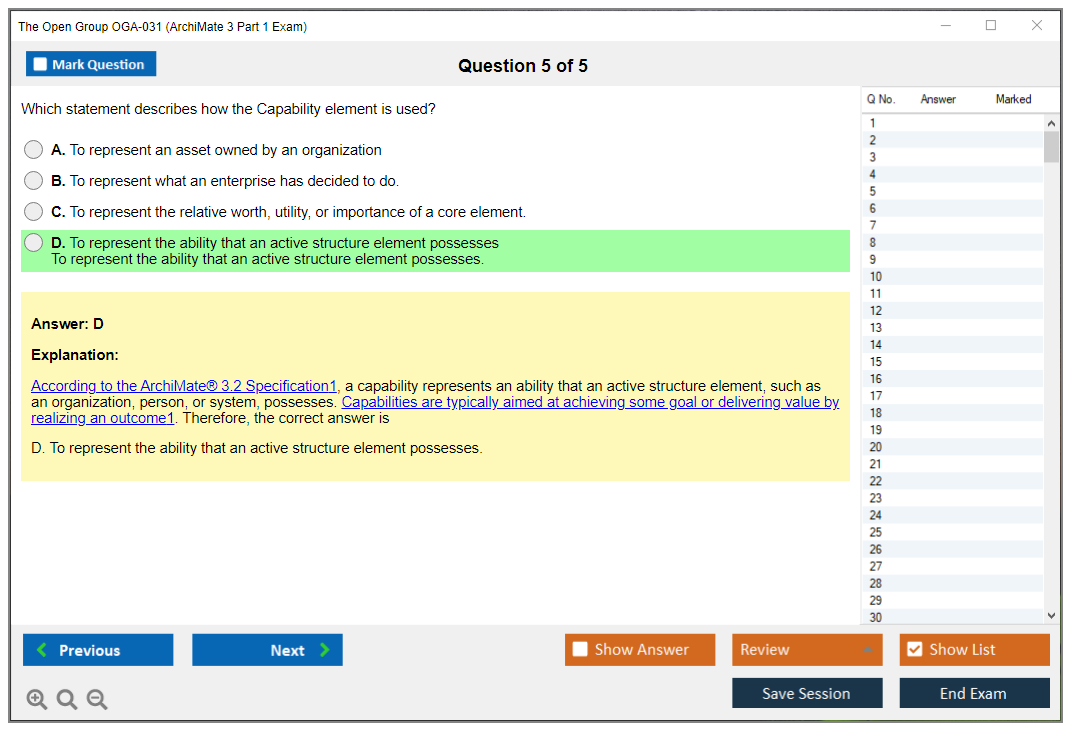 The Open Group OGA-031 (ArchiMate 3 Part 1 Examination) is a certification exam designed to validate the knowledge and understanding of the ArchiMate 3.0 specification, a standard for enterprise architecture modeling.