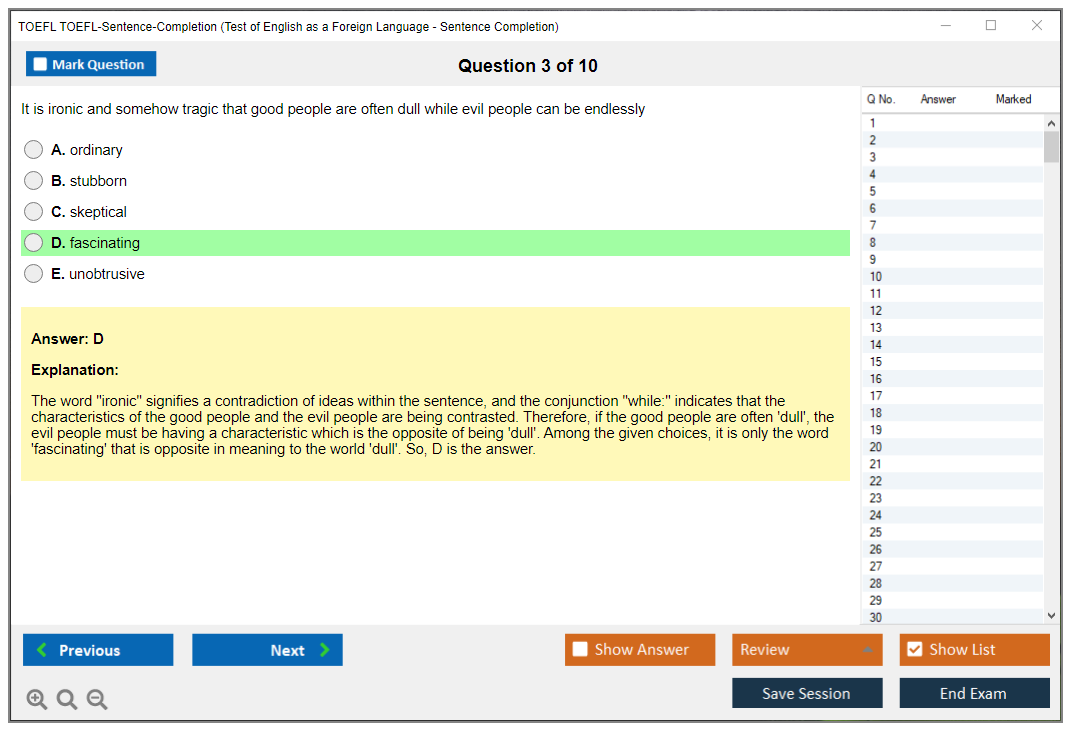 Pass TOEFL TOEFL-Sentence-Completion Exam in First Attempt with DumpsBoss Practice Exam Dumps!