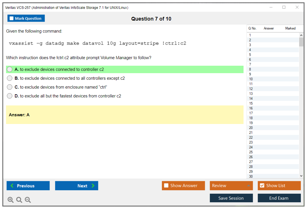 The Veritas VCS-257 exam, also known as Administration of Veritas InfoScale Storage 7.1 for UNIX/Linux, is designed to validate the knowledge and skills required for managing and administering Veritas InfoScale Storage 7.1 in UNIX/Linux environments.