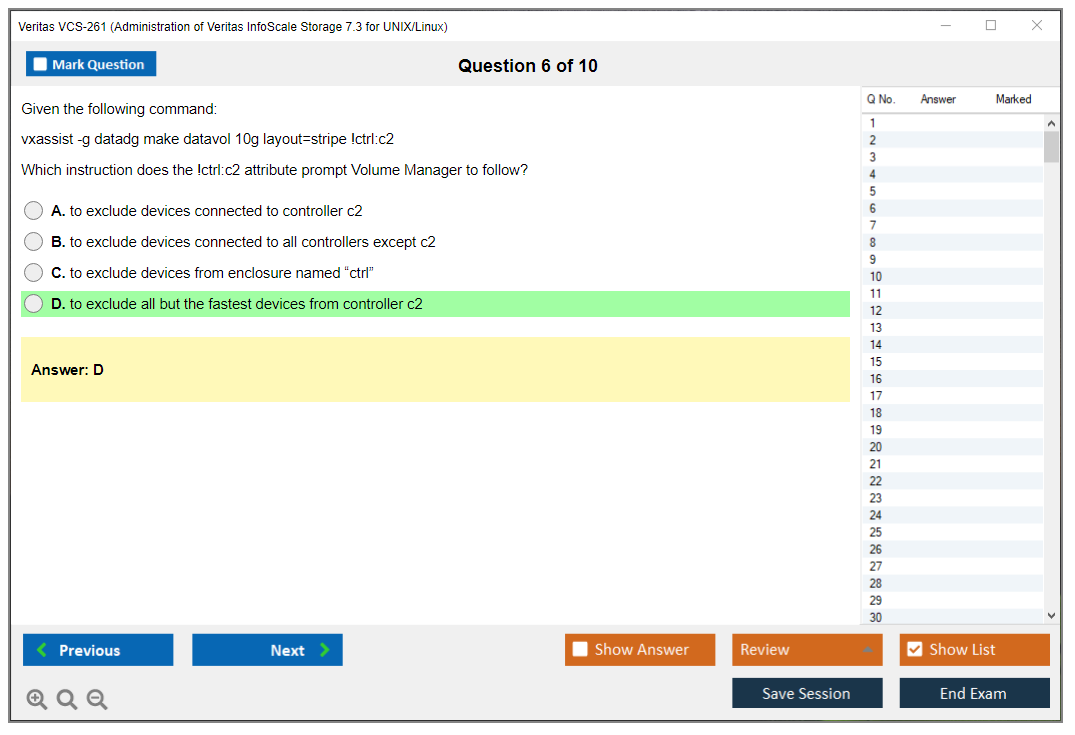 The Veritas VCS-261 exam, also known as the Administration of Veritas InfoScale Storage 7.3 for UNIX/Linux, is designed to validate the skills and knowledge of IT professionals in managing, configuring, and administering Veritas InfoScale Storage in a UNIX or Linux environment.
