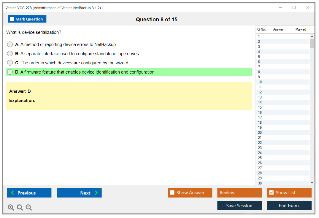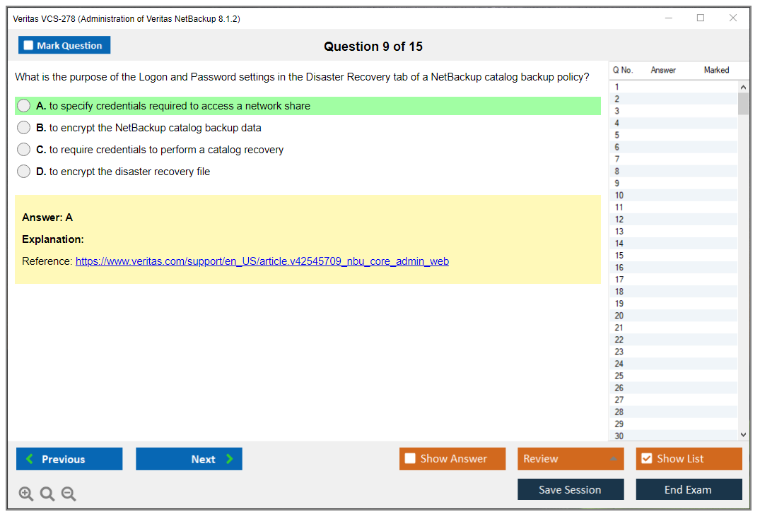 The Veritas VCS-278 exam, also known as Administration of Veritas NetBackup 8.1.2, is designed to test the knowledge and skills necessary to administer, configure, and manage Veritas NetBackup 8.1.2 environments.