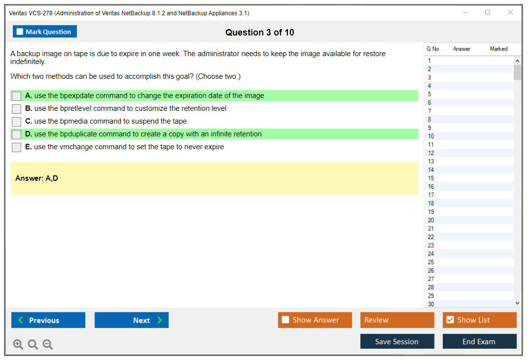 The Veritas VCS-279 exam, also known as Administration of Veritas NetBackup 8.1.2 and NetBackup Appliances 3.1.2, is designed to validate the skills and knowledge necessary to administer, configure, and manage Veritas NetBackup 8.1.2 and NetBackup Appliances 3.1.2.