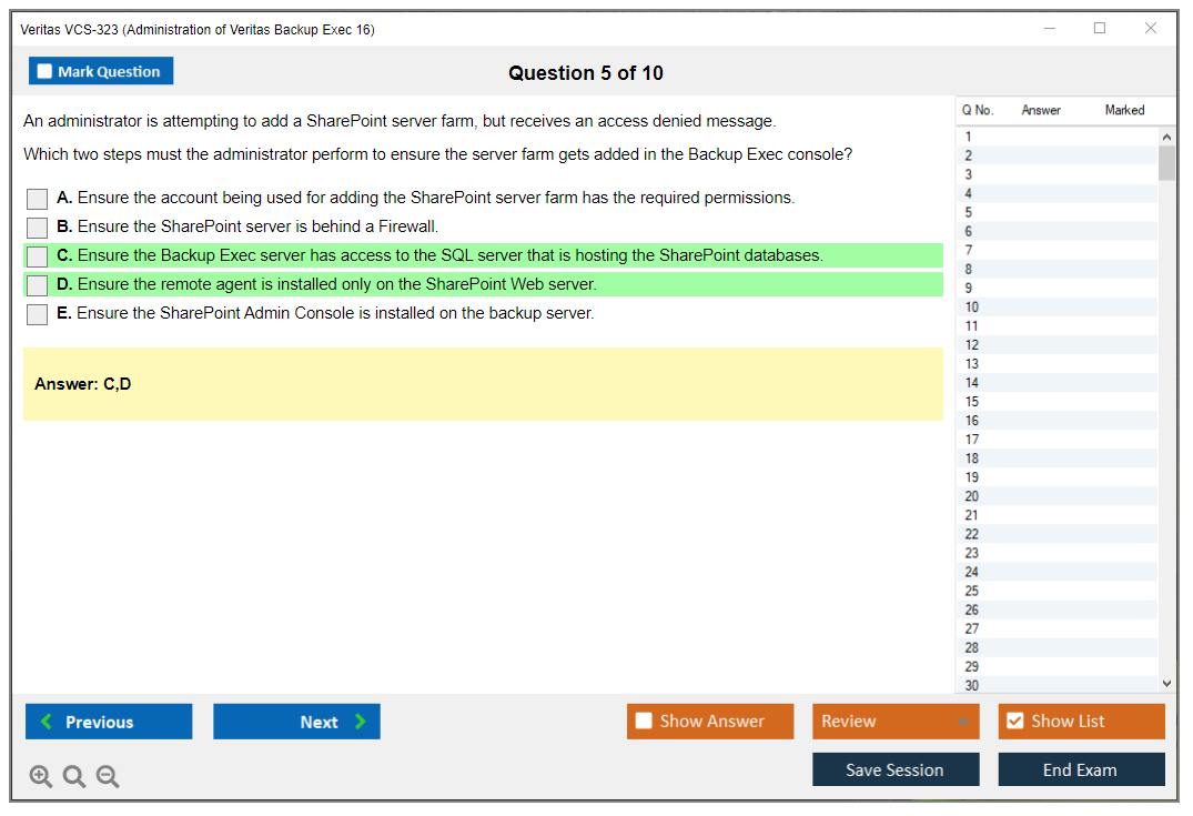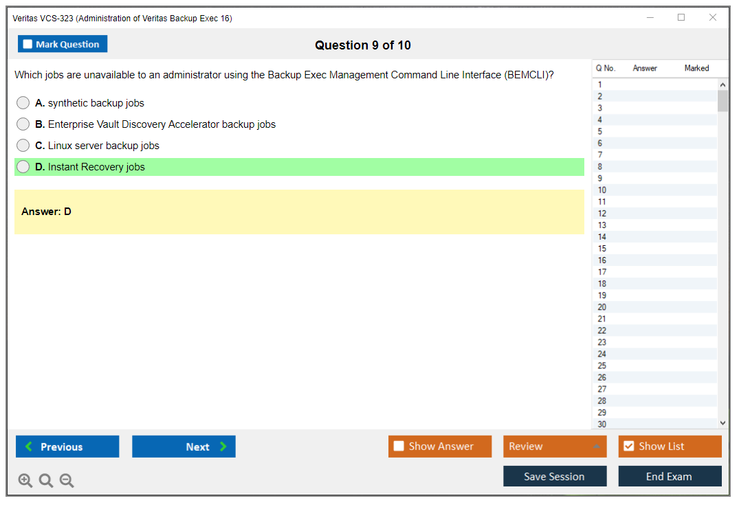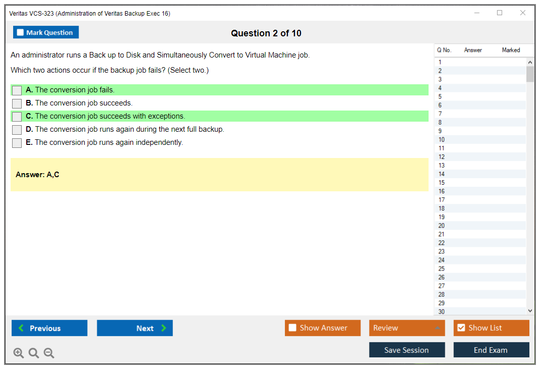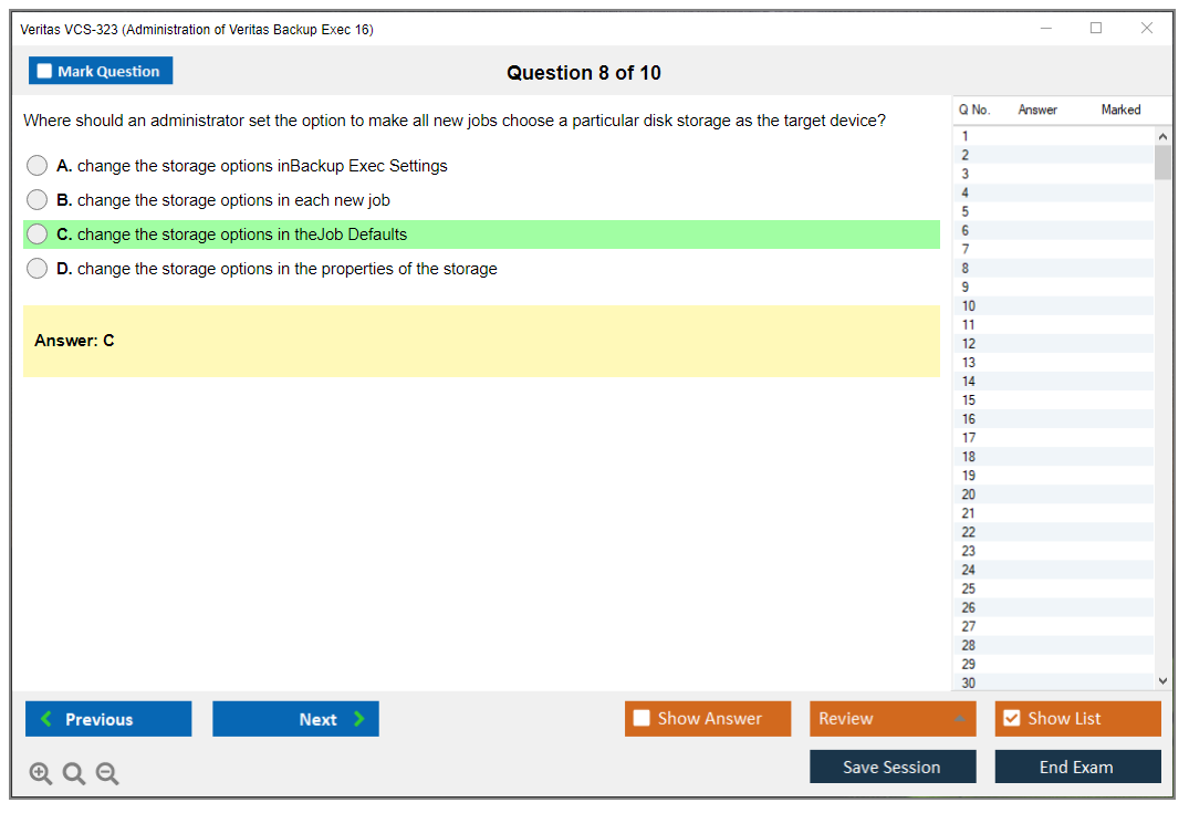 The Veritas VCS-323 exam is a certification test aimed at IT professionals who specialize in data protection and management using Veritas Backup Exec 16. The exam assesses the candidate's ability to perform administrative tasks and manage Backup Exec environments efficiently.