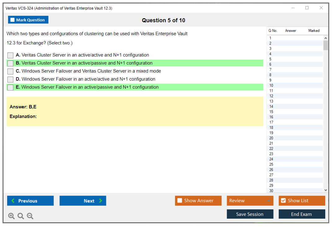 The question format of the Veritas VCS-324 exam includes multiple-choice and multiple-select questions.
